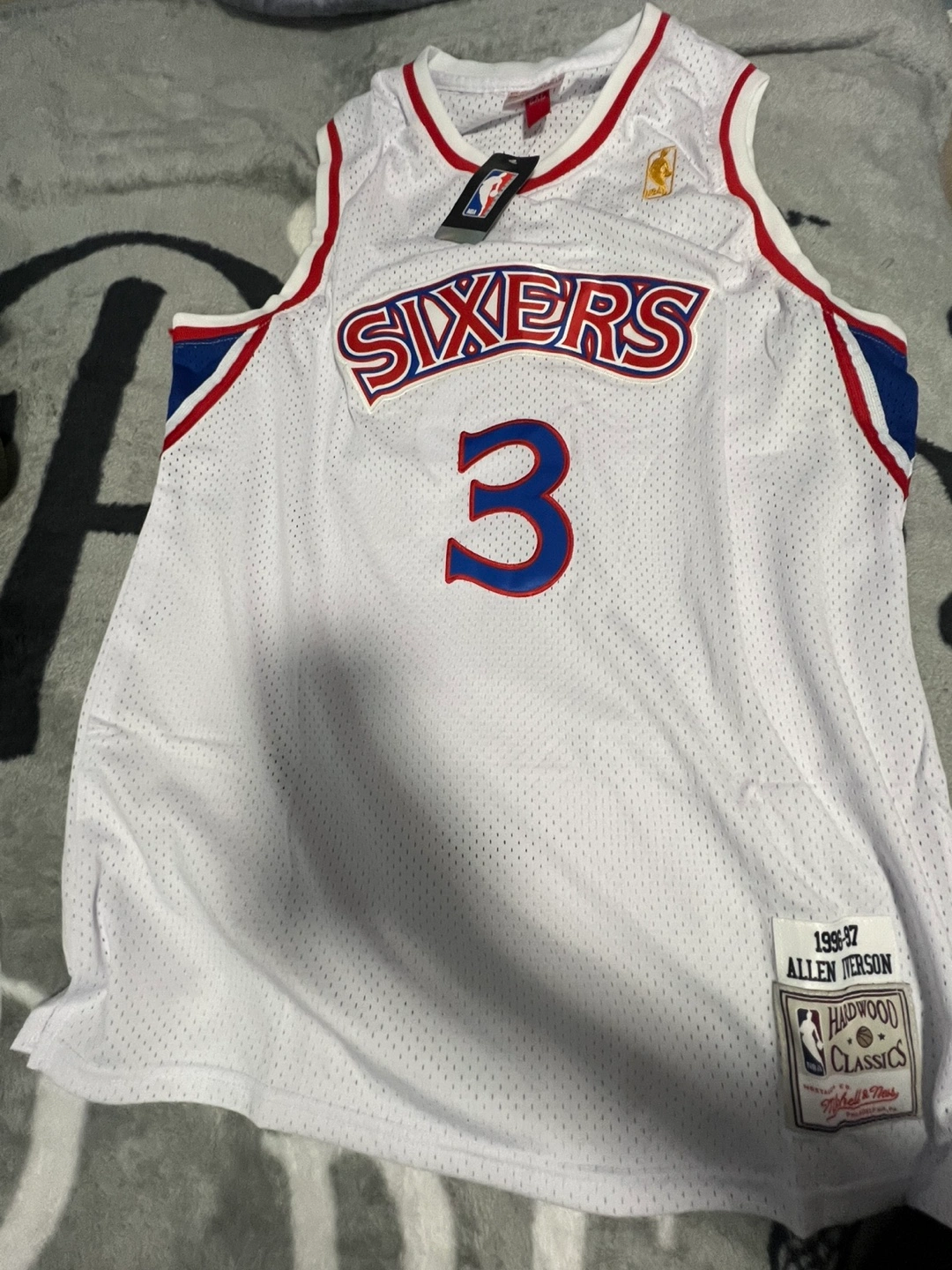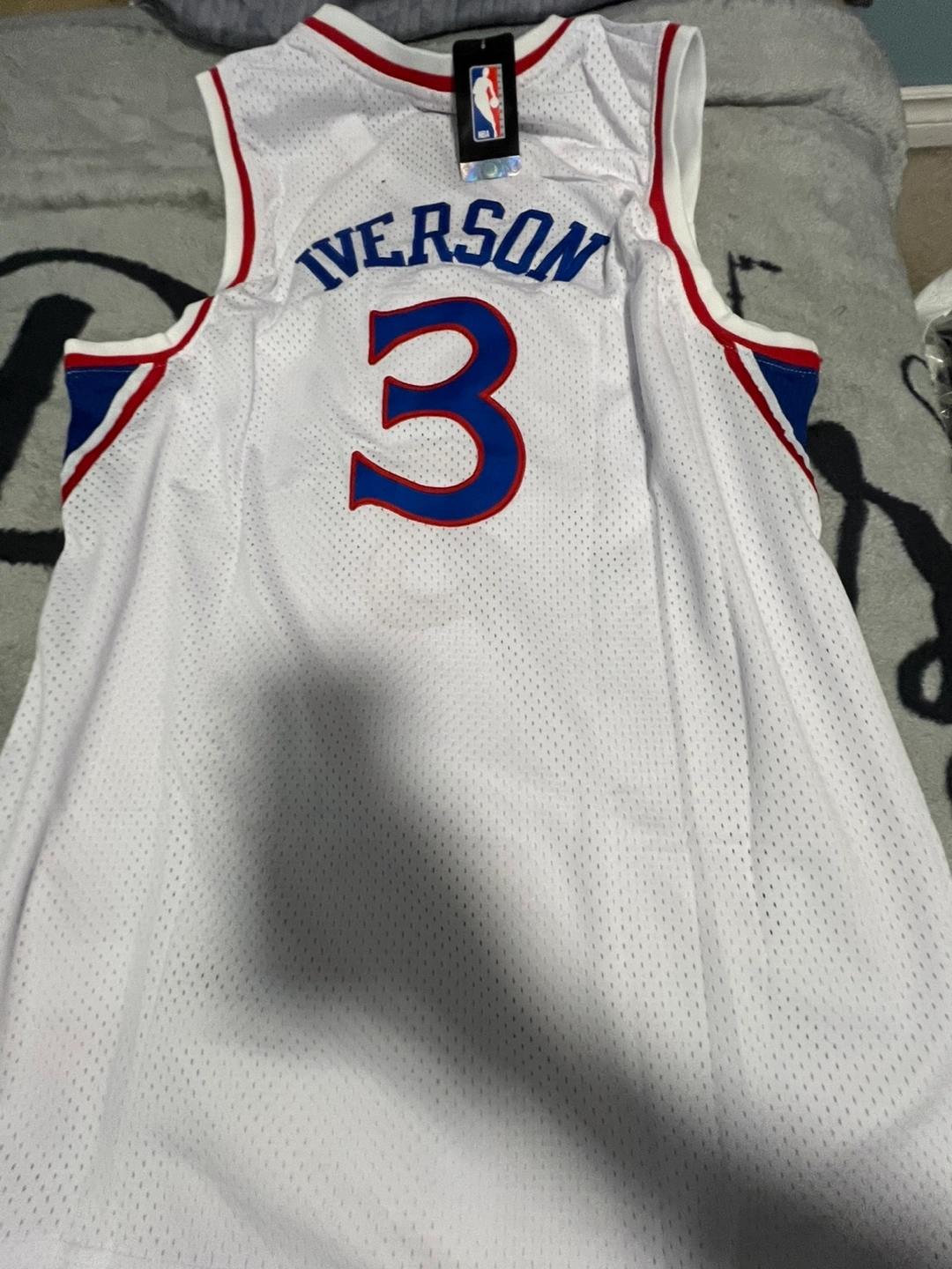 Selling an Allen Iverson Philadelphia Sixers jersey. It's in great condition and ready for a new fan! The jersey is a size large and XL and features Iverson's name and number 3. Perfect for showing your Sixers pride!