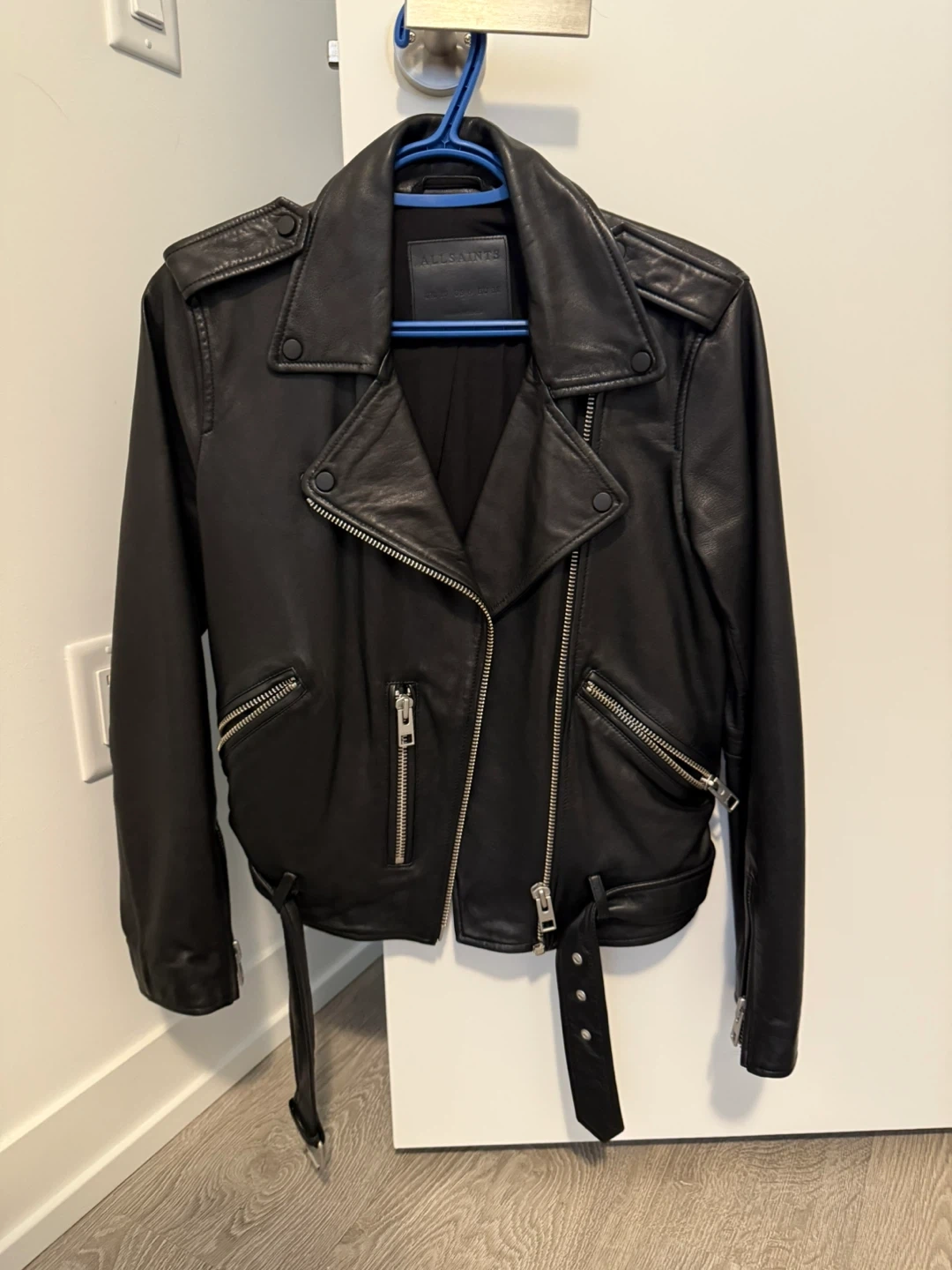 40Selling a stylish AllSaints black leather biker jacket. It's a size US 6, UK 10, and EU 38. This jacket is perfect for adding a bit of edge to any outfit! The material is high-quality leather, ensuring both style and durability. Excellent condition! Original price was around $500-$600. Selling at $250