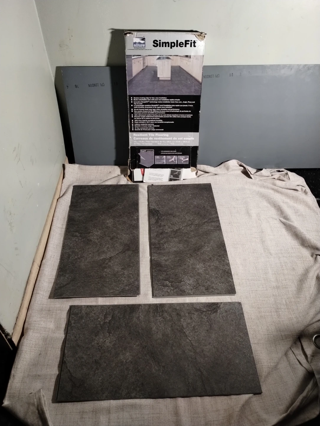 50Selling a box of Allure SimpleFit resilient tile flooring. Each tile measures 12 x 23.82 inches, and there are 10 tiles in the box, covering 19.8 sq ft. The box includes instructions for easy installation using the SimpleFit locking end joint system. No underlayment or glue needed! PU lakeshore AND mimico area