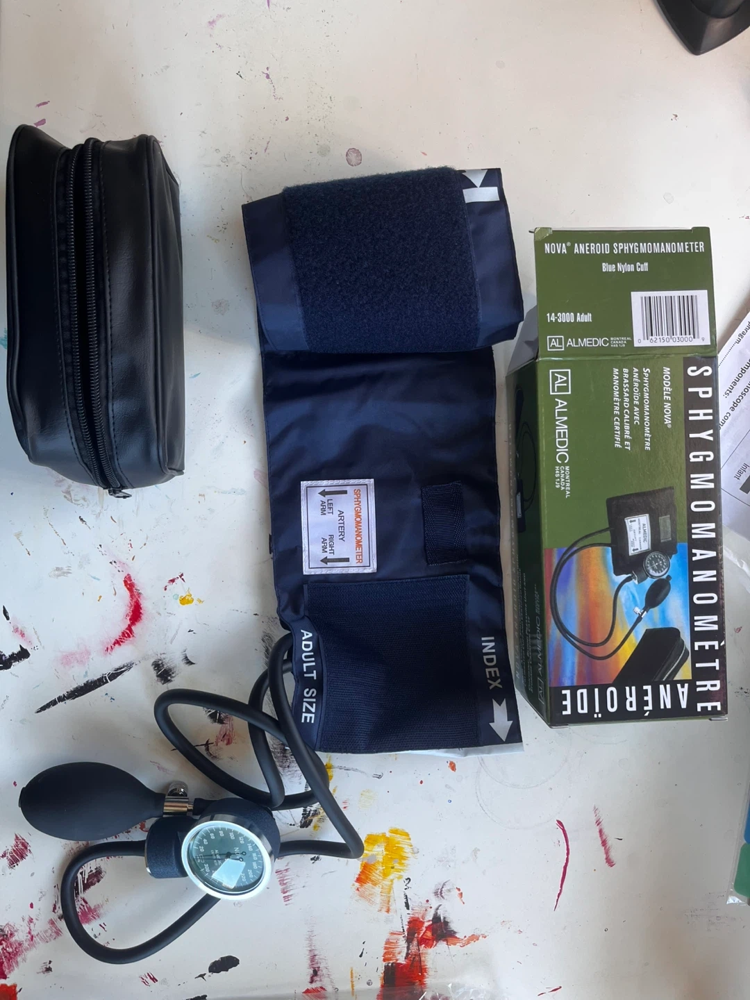 Selling an Almedic blood pressure pump with a blue nylon cuff! It's an adult size and comes with a carrying case. Perfect for monitoring blood pressure at home
