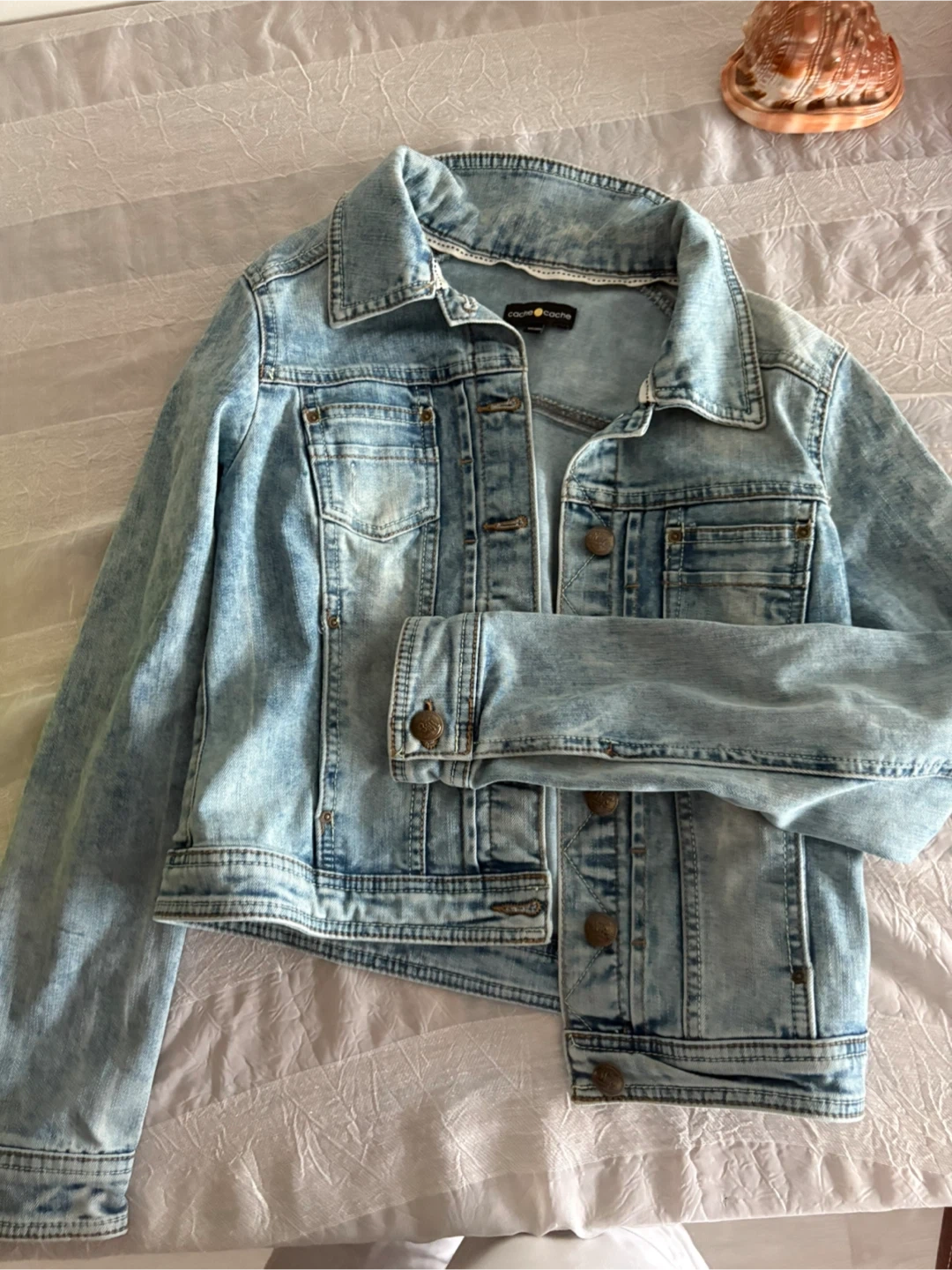 Selling a cute Almost Famous denim jacket in size small! The material is a light wash denim, perfect for layering. It's in great condition and ready for a new home