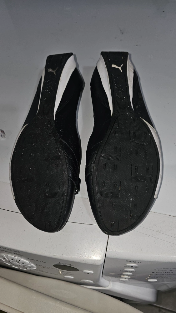 Selling a pair of Puma wedge heel shoes in black and white. They are in great condition, as shown in the pictures. Size US 9