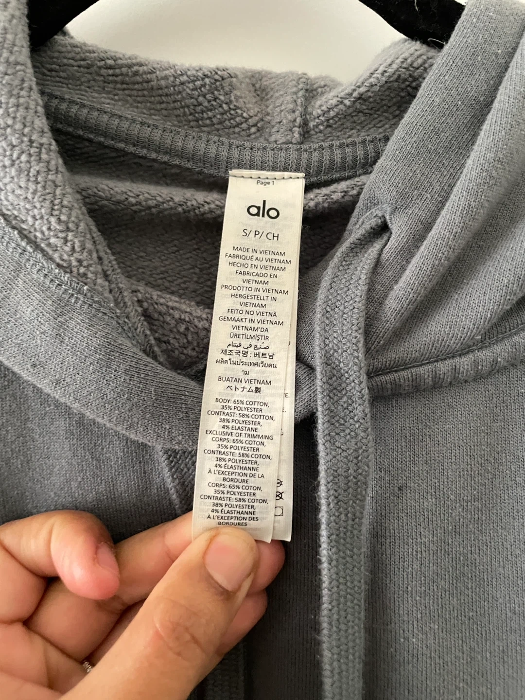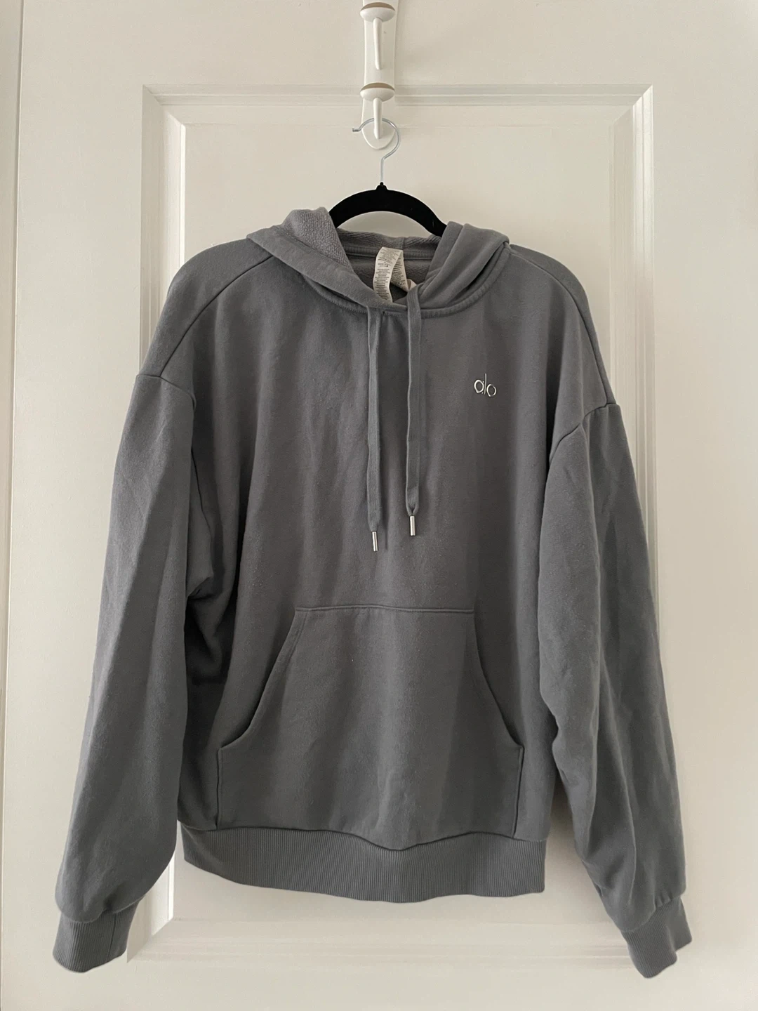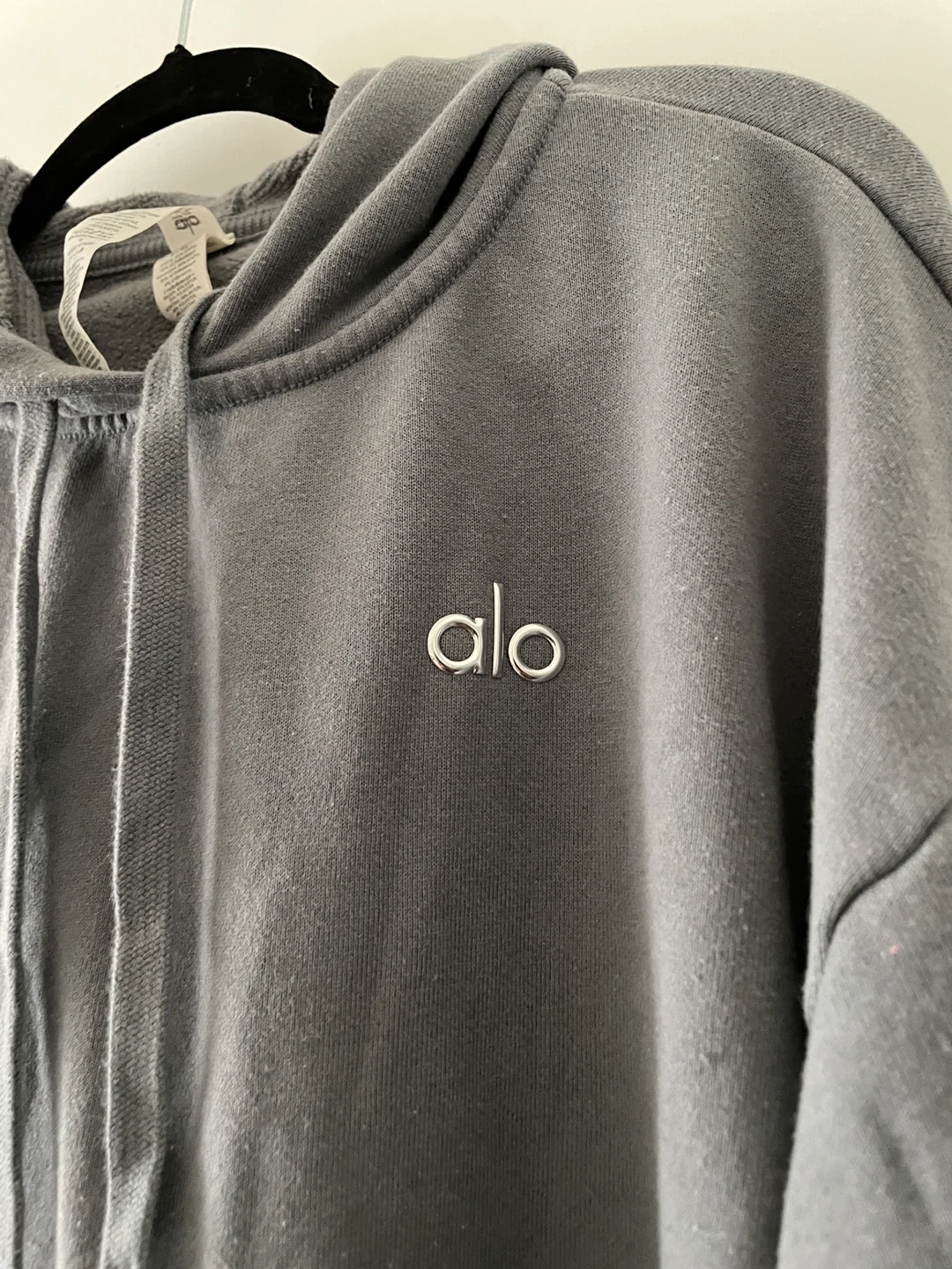 78Selling an Alo hoodie in a lovely grey colour. It's made from a comfy blend of cotton and elastane. Perfect for lounging or a casual day out! Size: small In good condition, worn just a handful of times. Retails: 178+ tax Pick up near bloor-yonge station.