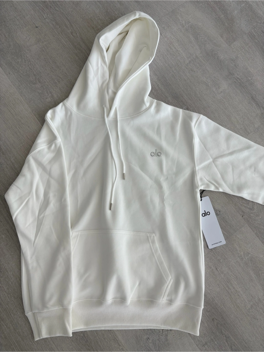 173Selling a brand new and authentic with tags ALO Accolade Hoodie in white-non fleecy! It's super comfy and stylish. The material is soft, and it’s perfect for lounging or going out. Retails for $230! 📎 Message me for pick-up address and shipping options. ⚠️ Prices are firm and in cash, all in final sale.