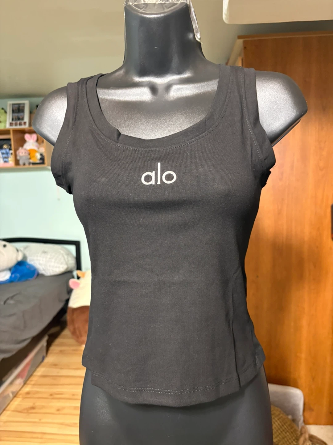 Selling a black Alo Yoga tank top! It's in great condition and perfect for workouts or casual wear. The material is comfortable and breathable, making it ideal for any activity. Feel free to reach out if you're interested
