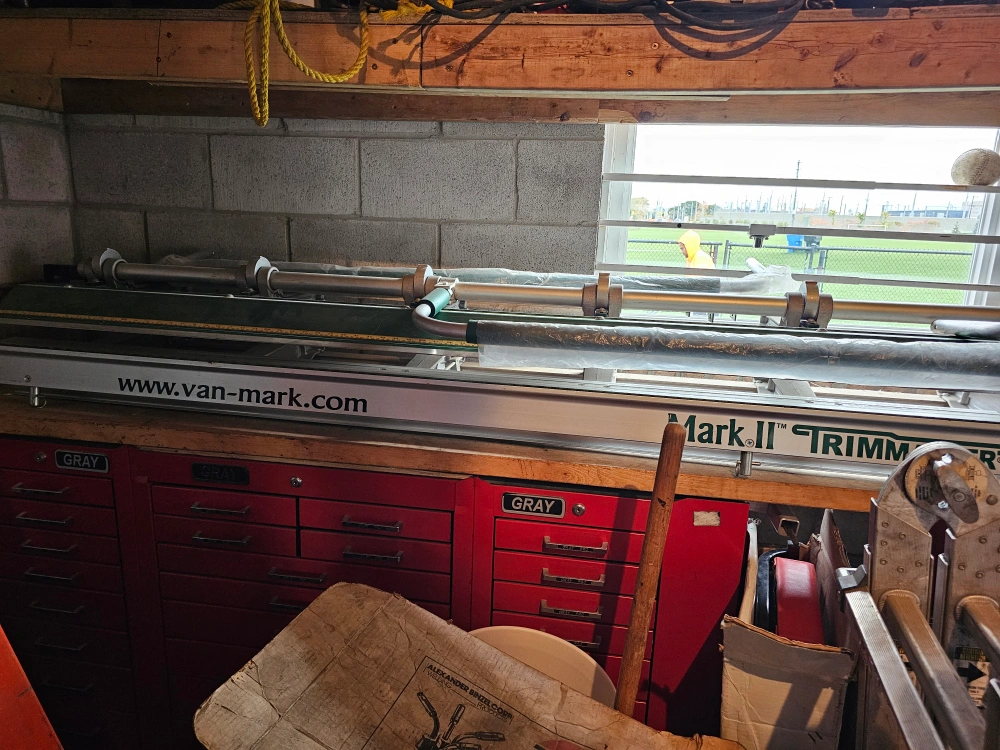 18Really not used, just as I got it, I got hurt and retrained for different job. New condition, 10' 6" Van Mark II Trimmaster 6,996.25 new. comes with work stand that was an extra. Only available for pickup