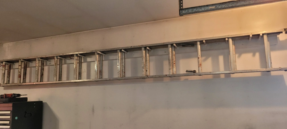 10Selling an aluminum extension ladder. It's in used condition, with some signs of wear. Perfect for various tasks around the house or job site!
