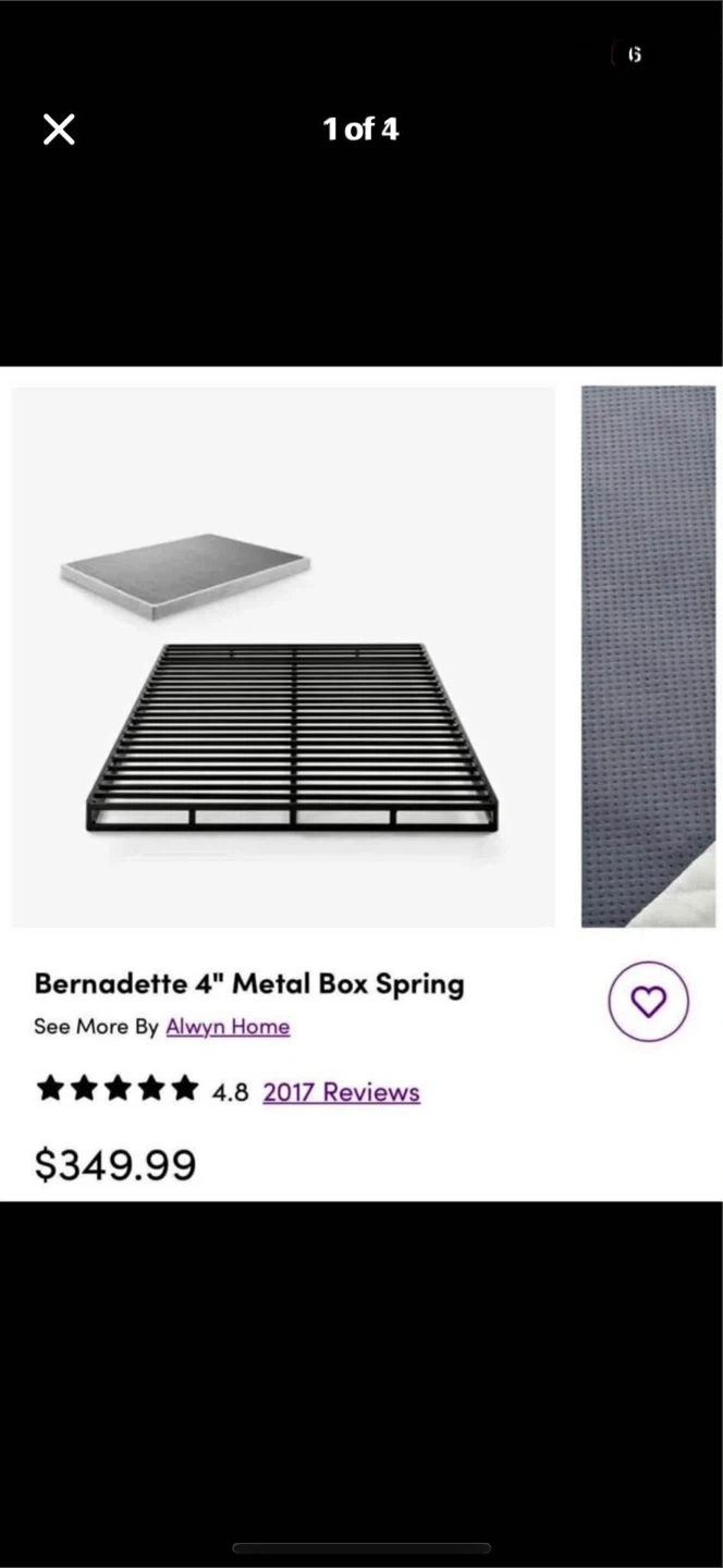 56Selling an Alwyn Home Bernadette 4" metal box spring. It's in great shape and ready to support your mattress! Originally bought for $349.99.