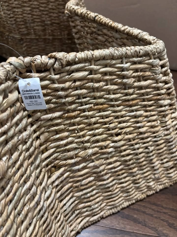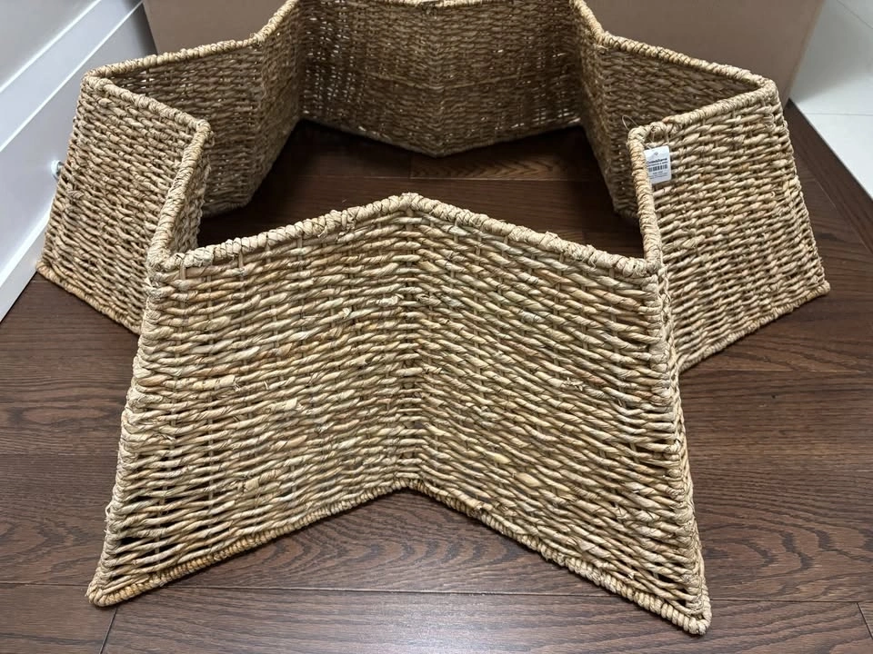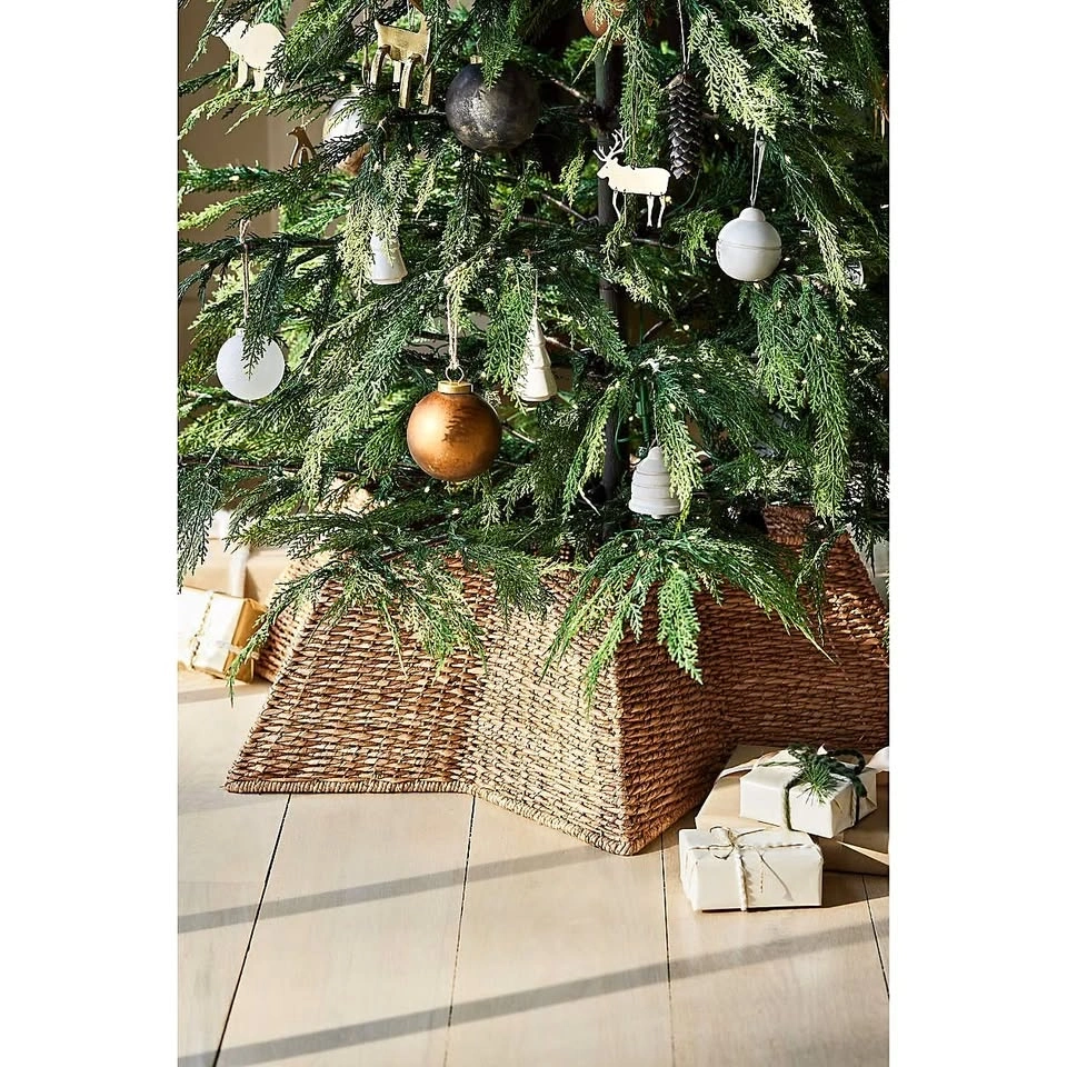 Crate & Barrel Woven Star Christmas Tree Collar. Brand New with Tags. Pickup Location: Bloor & Jane. From a smoke and pet free home. Crafted of natural fibers on a wire frame, the woven star brings modern organic warmth to your Christmas tree. Made in The Philippines. Overall Dimensions: Width: 38", Height: 10". Care: Clean surfaces with a dry or damp soft cloth.