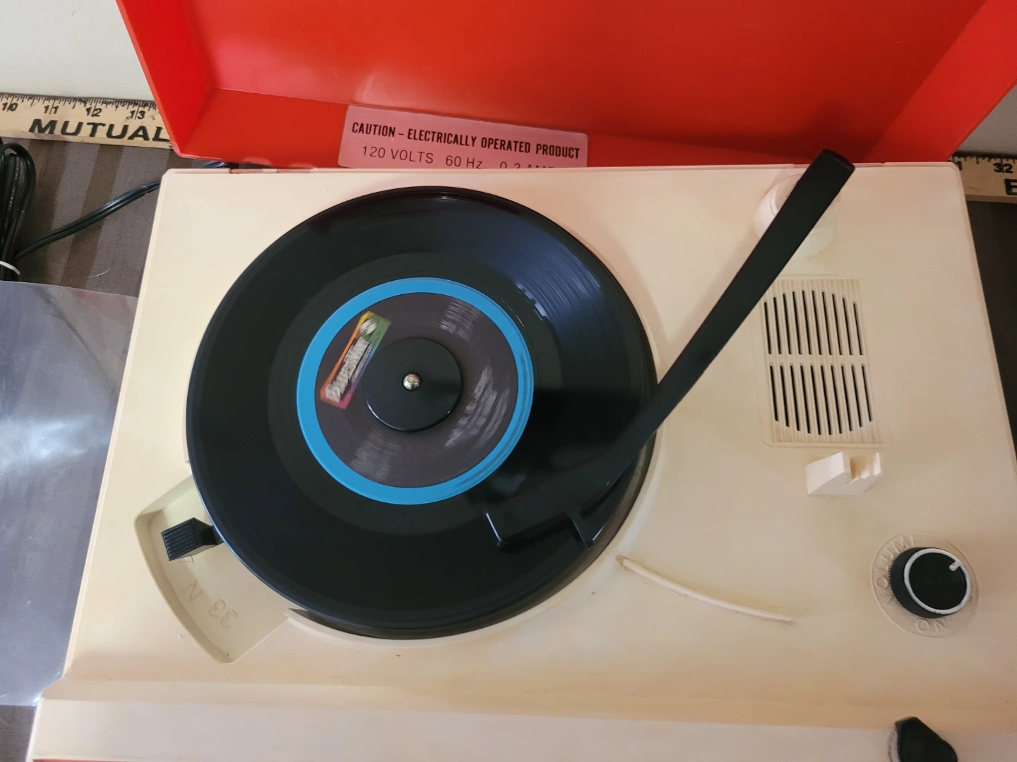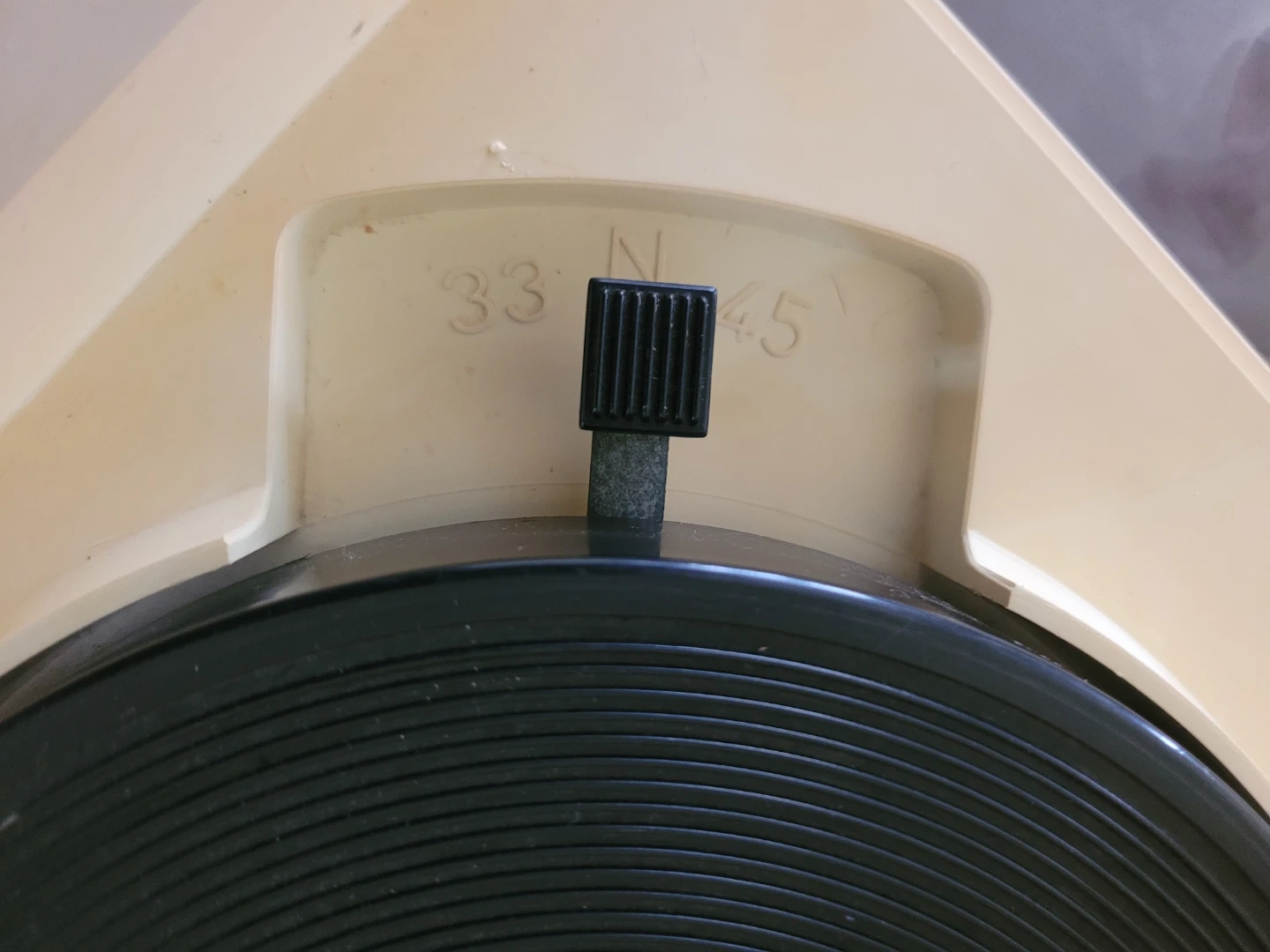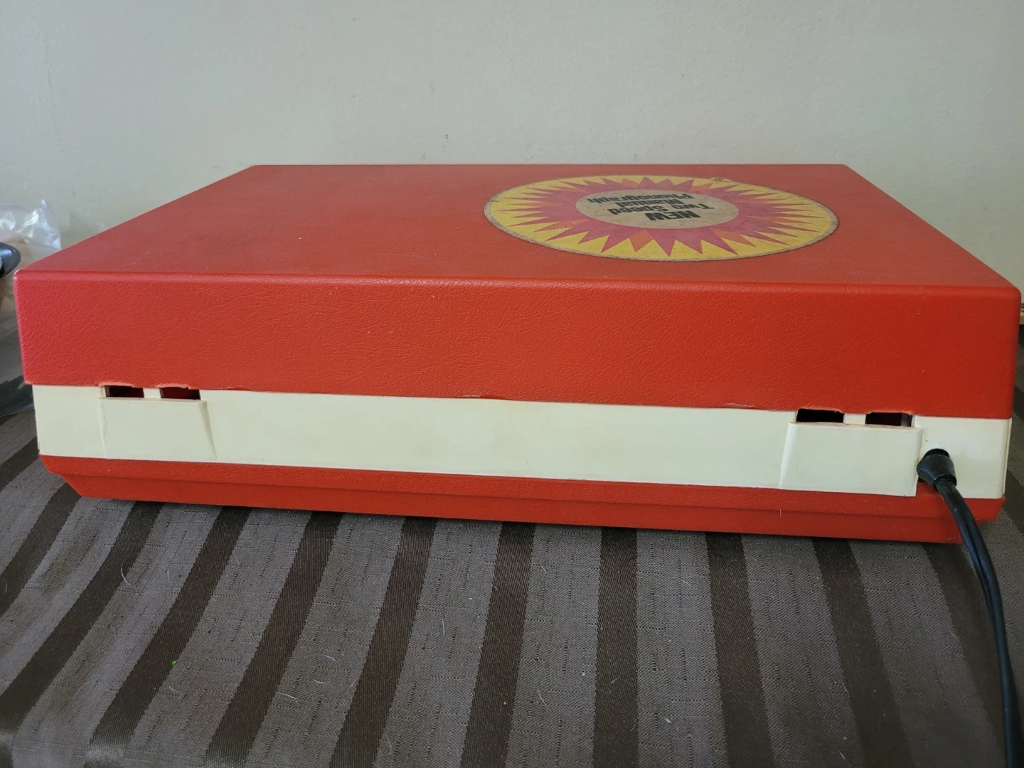 Vintage Dorchester Music Maker portable record player. Plays 33 and 45 RPM records. Cream and red colour. Perfect for listening to your vinyl collection!