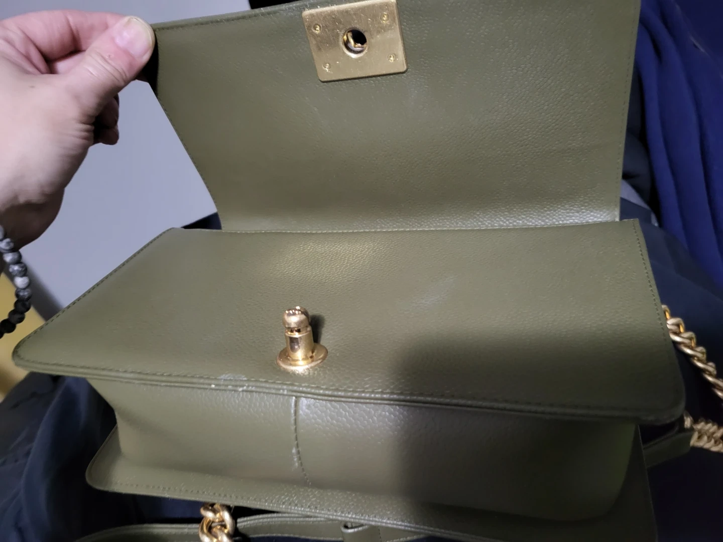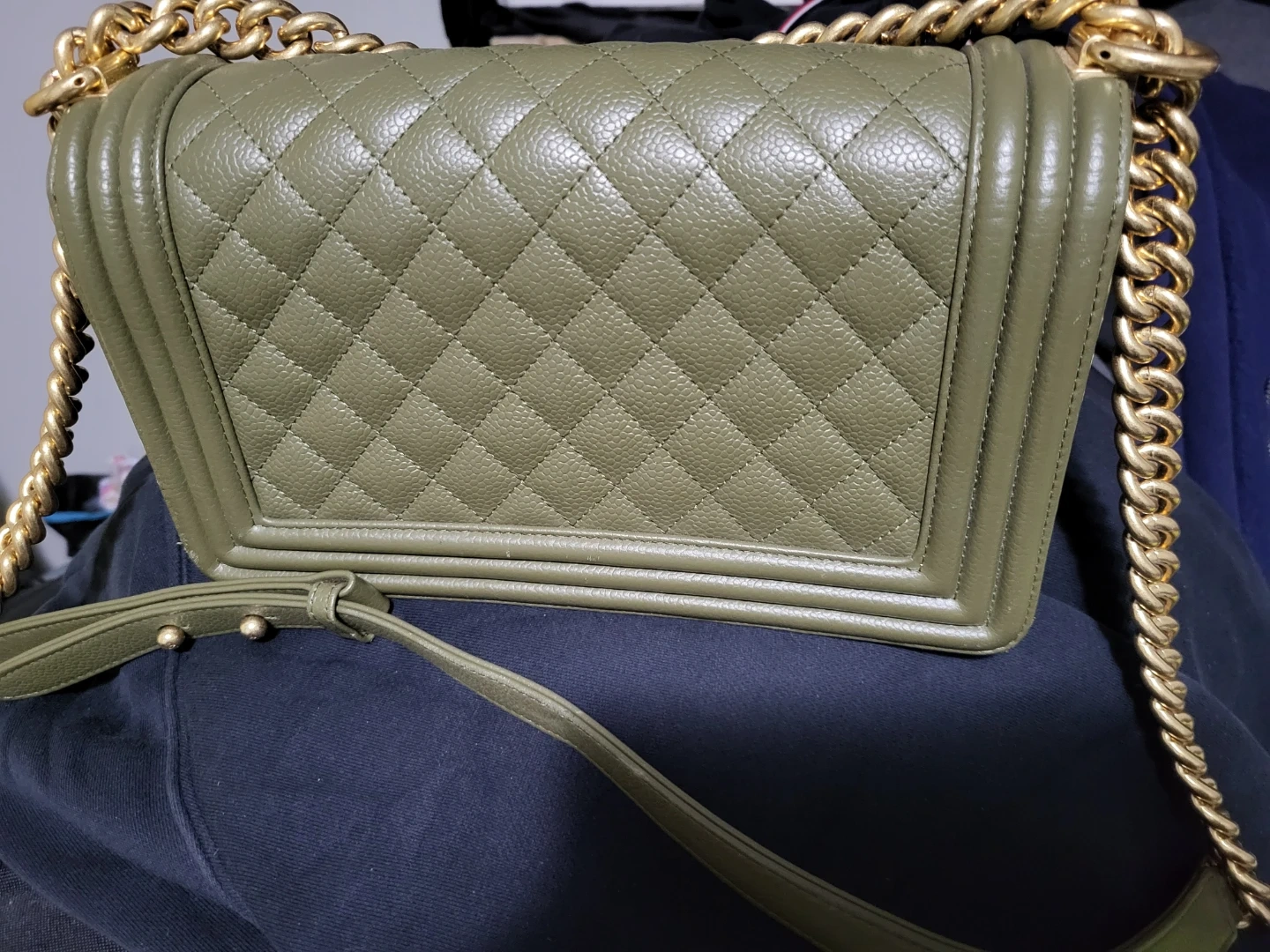 Buy & SellChanel Quilted Flap Bag - Olive GreenChanel Quilted Flap Bag - Olive Green$120Beautiful Chanel flap bag in a stylish olive green. Features a quilted exterior with a gold chain strap. Made in Italy.ConditionLike newSizeclutchWHERE TO MEETBelvedere Train StationView MapSELLERverifiedKellyNortheast Edmonton20711 reviews4 chats·3 favorites·77 viewsSEND CHAT TO SELLERHi Kelly! I’m interested in your listing.Hi Kelly! I’m interested in your listing.Get the Karrot app to chatSign In to chat