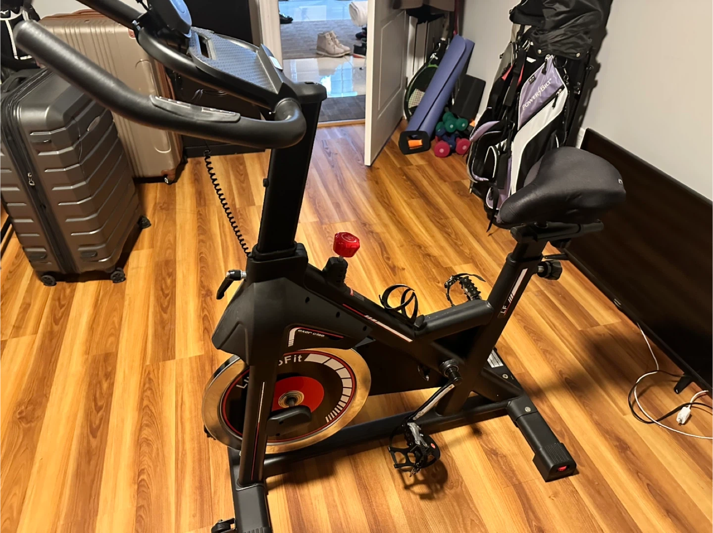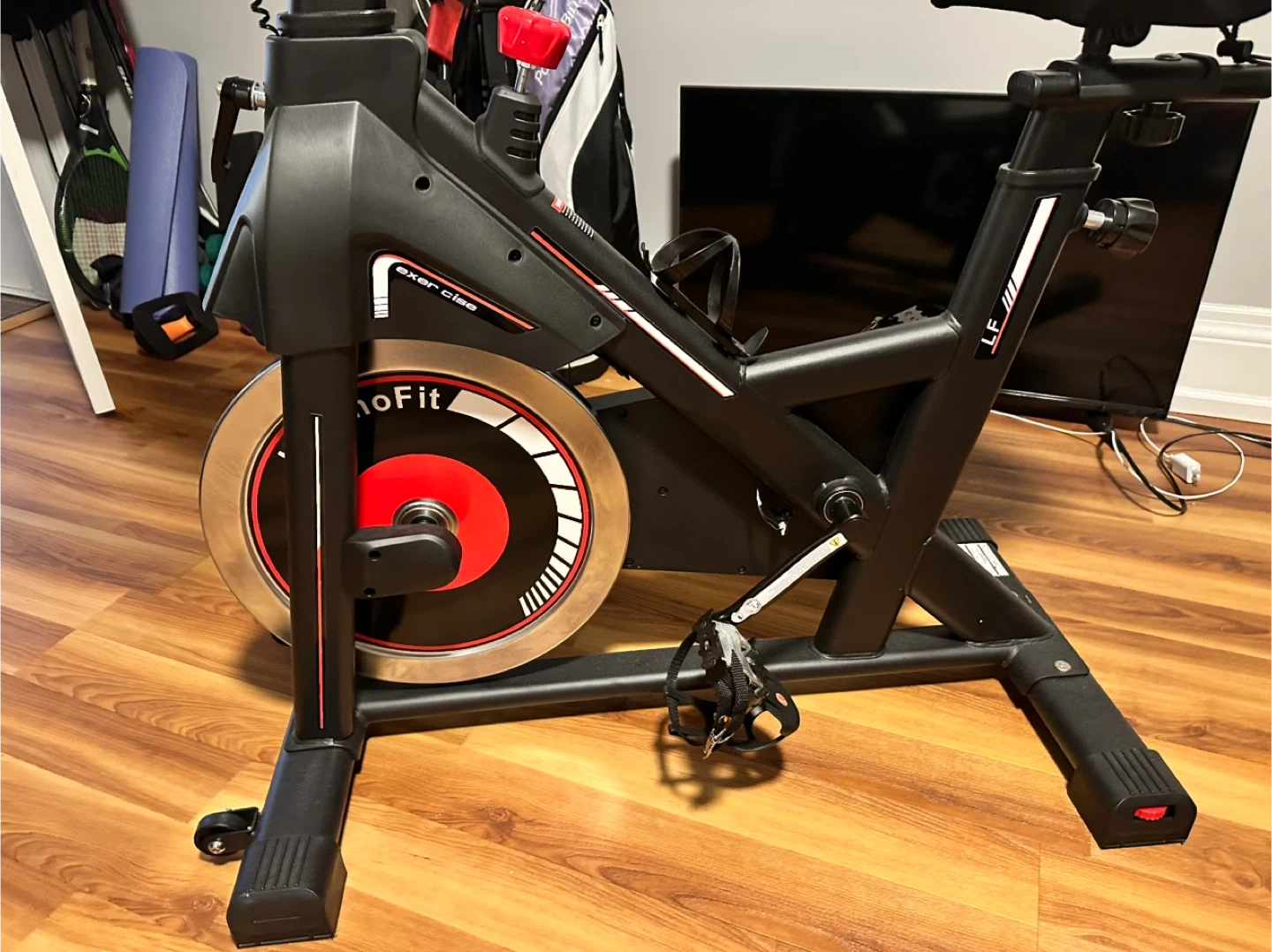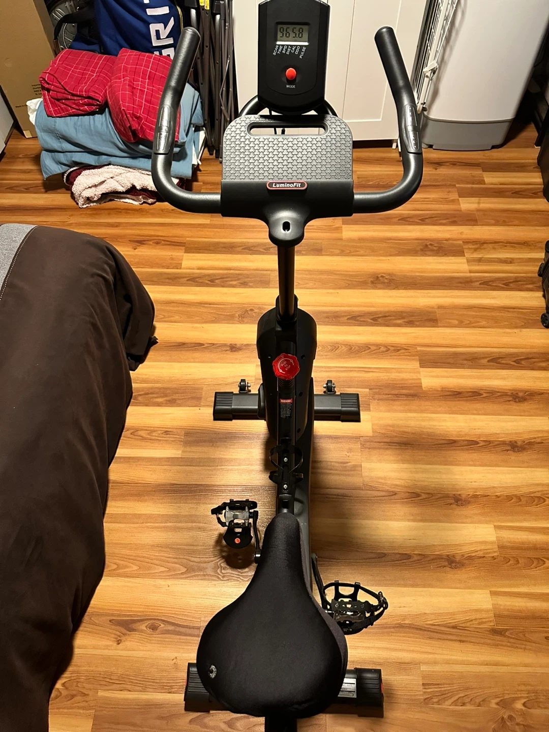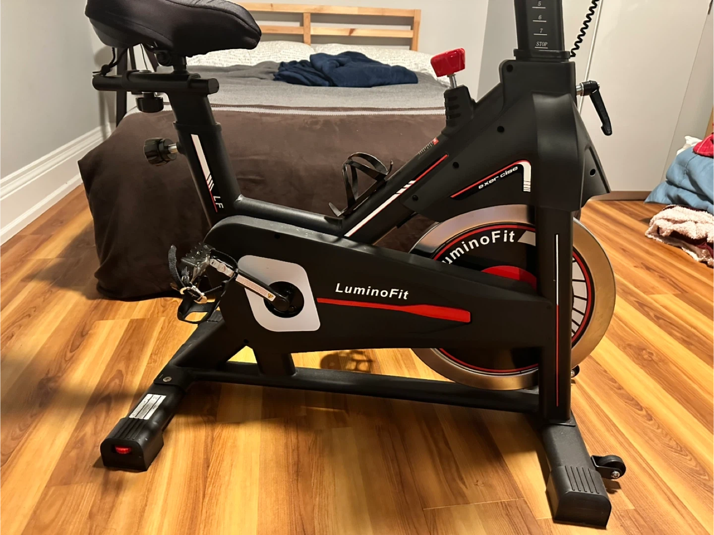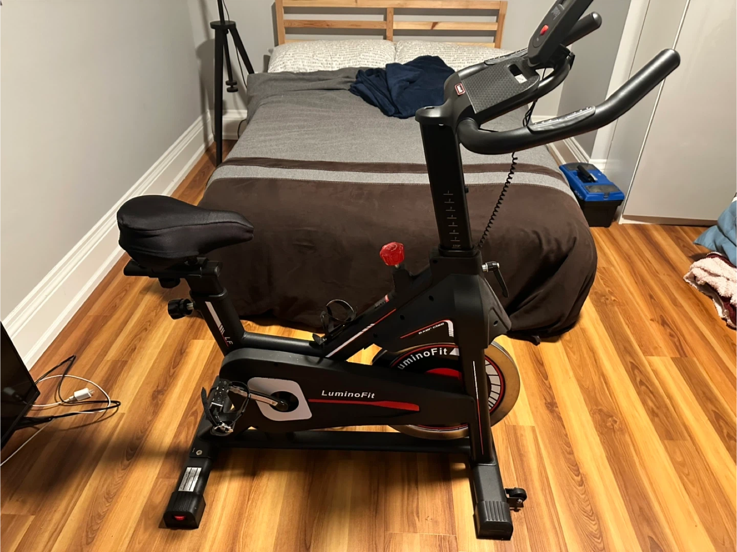 This Luminofit exercise bike is perfect for home workouts. It features a sturdy frame and adjustable seat. Get a great cardio session without leaving the house!