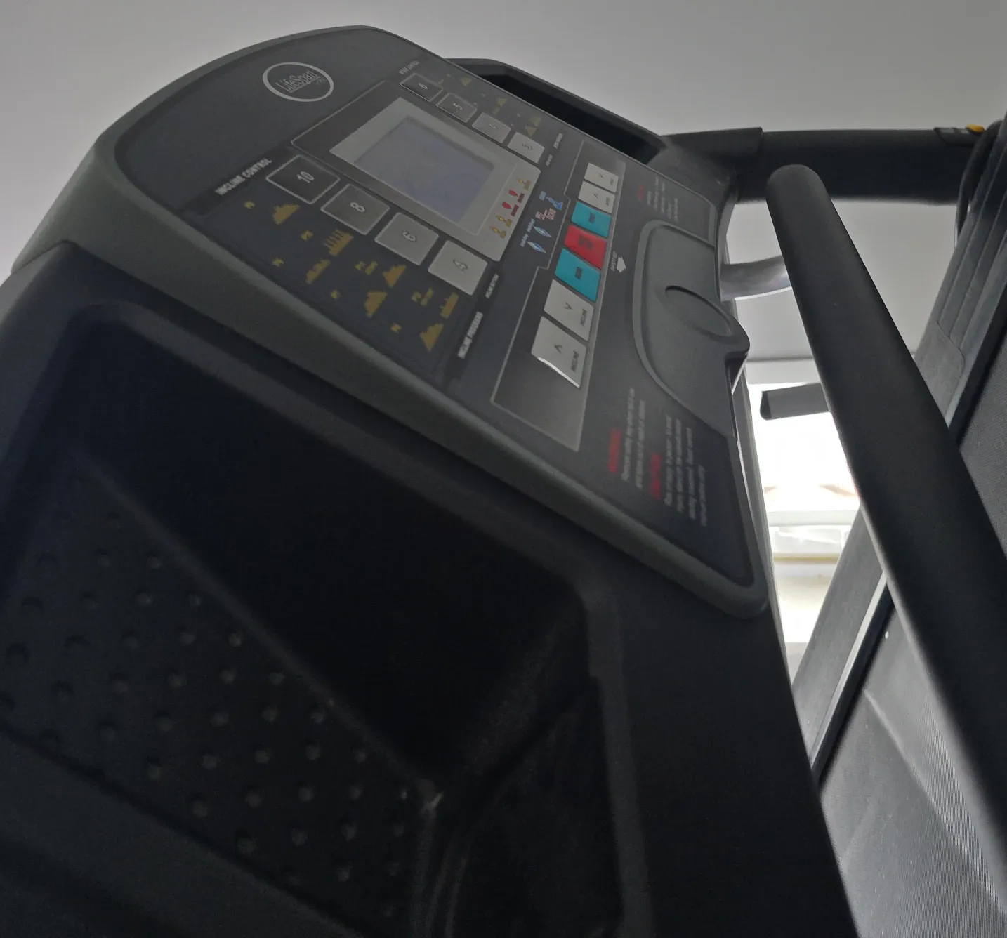 Life Fitness treadmill with various incline and speed settings. It's in good working condition. This treadmill is suitable for home gym use for cardio workouts.