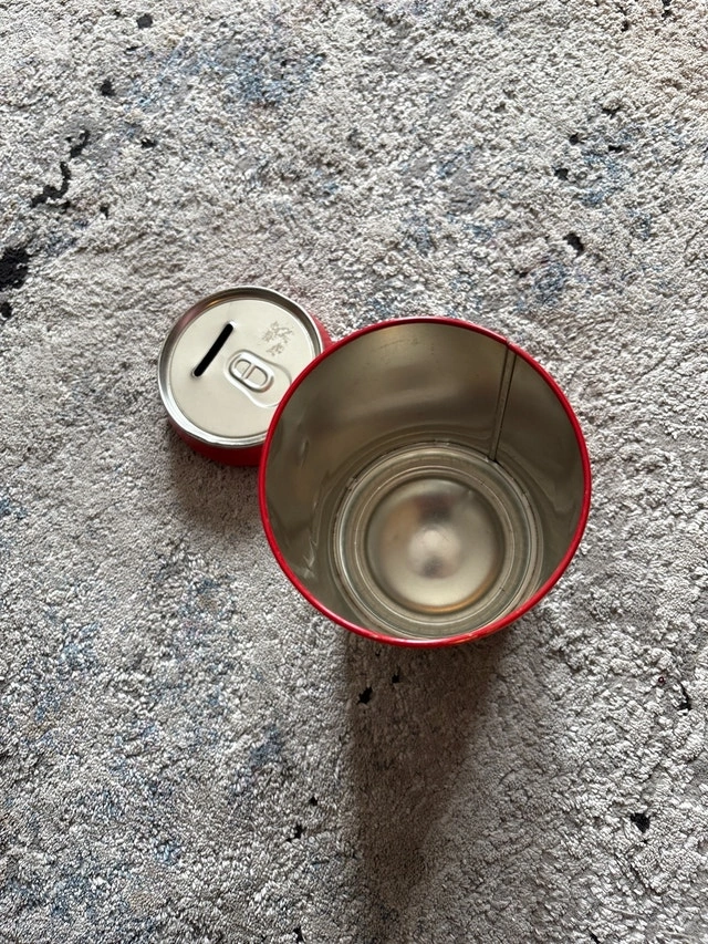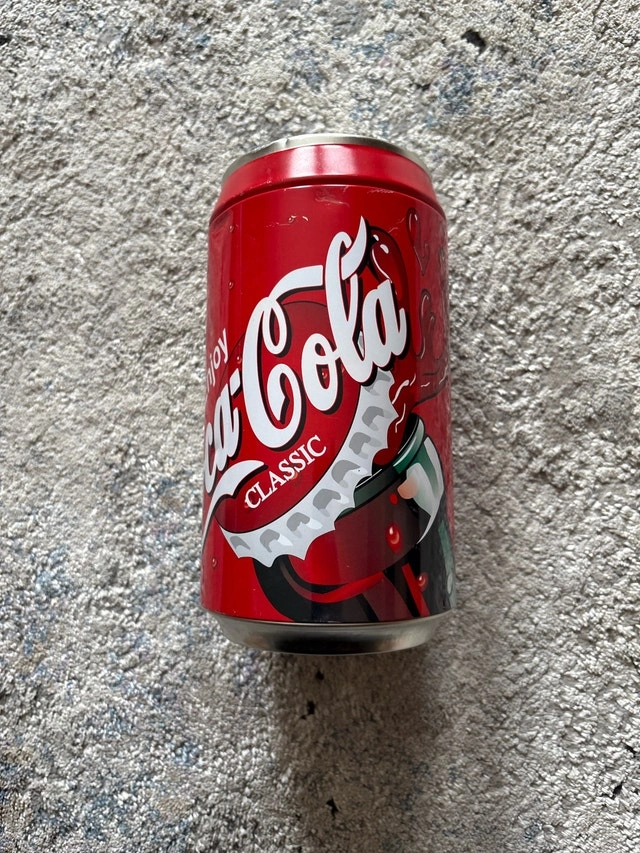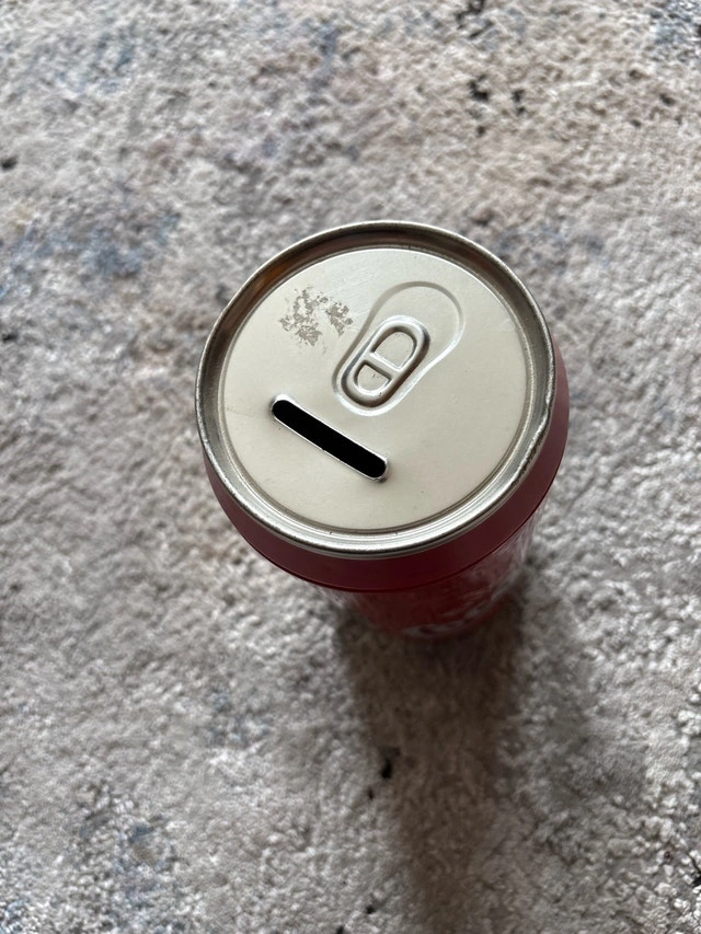 This Coca-Cola piggy bank, shaped like a classic Coke can, is a fun way to save your spare change. It has a coin slot on top and is in used condition, showing some signs of wear, but still fully functional and ready to hold your savings. This unique piece would be a cool addition to any collection or as a starter bank for someone special. If the ad is up, the piggy bank is available! Cash accepted.