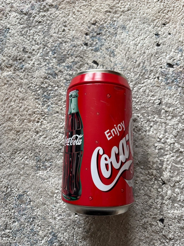This Coca-Cola piggy bank, shaped like a classic Coke can, is a fun way to save your spare change. It has a coin slot on top and is in used condition, showing some signs of wear, but still fully functional and ready to hold your savings. This unique piece would be a cool addition to any collection or as a starter bank for someone special. If the ad is up, the piggy bank is available! Cash accepted.