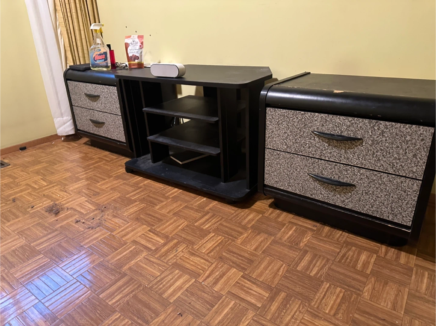 Selling a used bedroom set, including two dressers and a nightstand. They have a unique speckled design on the drawer fronts. Perfect for adding some vintage charm to your space!