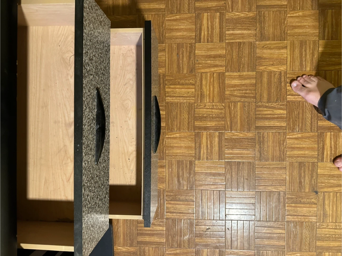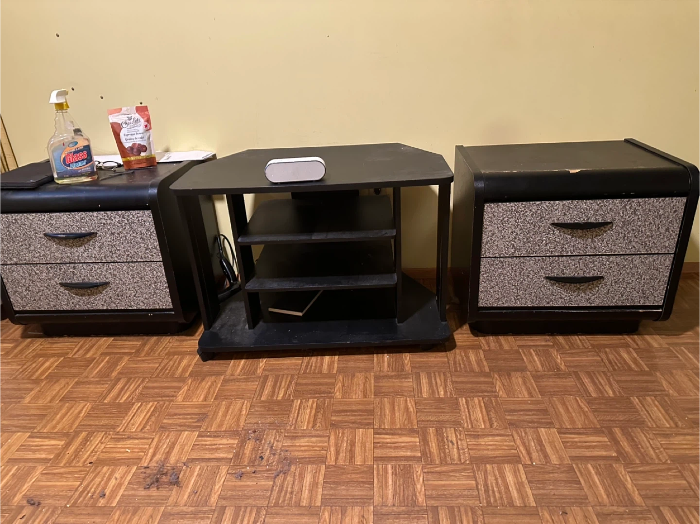 Selling a used bedroom set, including two dressers and a nightstand. They have a unique speckled design on the drawer fronts. Perfect for adding some vintage charm to your space!