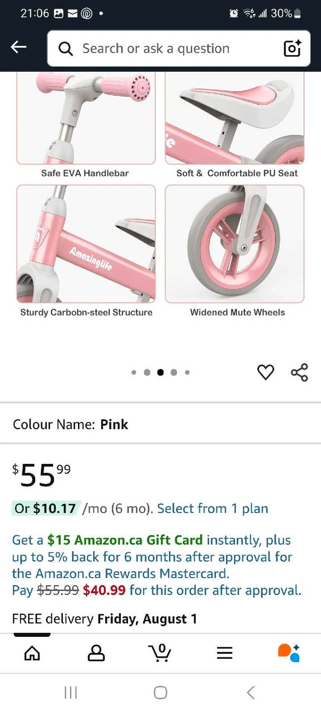 Get your little one rolling with this Amazing Life balance bike, designed to help toddlers develop their coordination and balance skills! This gently used bike is in good condition and ready for its next adventure. Featuring a sturdy frame and comfortable seat, it’s perfect for kids aged 18 months to 5 years. Key Features: * Lightweight and durable design * Adjustable seat height * Soft, comfortable grips * Puncture-proof tires Balance bikes like this typically sell for around $30 to $60 on Kijiji. I’ve priced this one at $35, considering its good condition. Looking for a fun way to help your child learn to ride? This balance bike is just the ticket! And hey, if the ad is up, it’s still available – no need to ask! Happy riding!