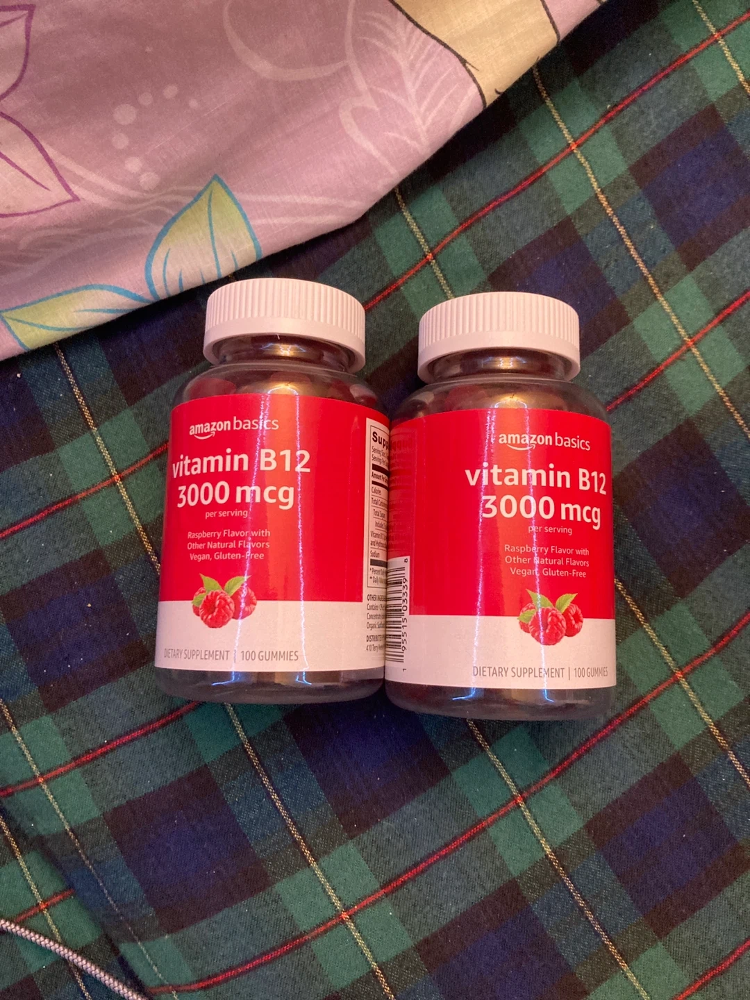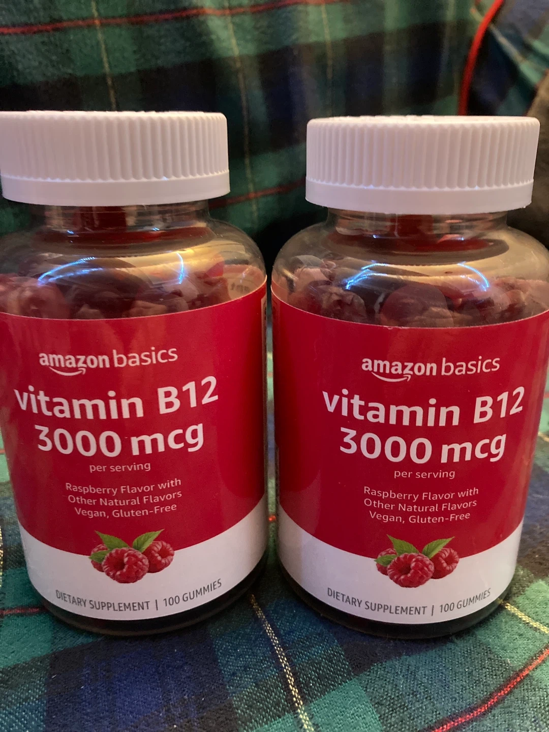 208I'm selling two bottles of Amazon Basics Vitamin B12 3000 mcg gummies. They're raspberry flavored with other natural flavors, vegan, and gluten-free. Each bottle contains 100 gummies. The expiration date is in 2025 December 31 Price for BOTH bottles $10 or $5 each