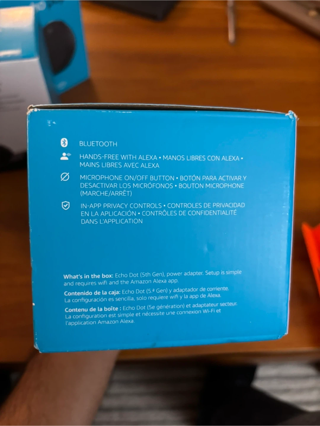 60Selling an Amazon Echo Dot (5th Gen)! It's a handy smart speaker with Alexa. What's in the box: - Echo Dot (5th Gen) - Power adapter Setup is simple and requires wifi and the Amazon Alexa app