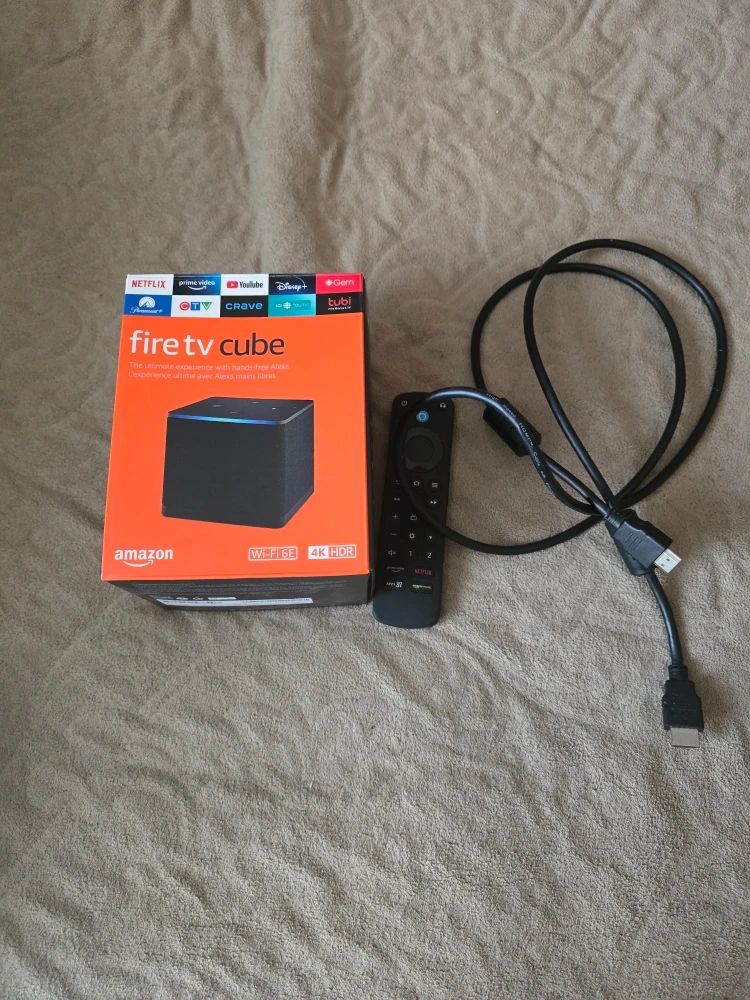 65Selling an Amazon Fire TV Cube! It's a 4K HDR streaming device that brings all your favourite content together. The ultimate experience with hands-free Alexa. Comes with Wi-Fi 6E! Includes the box, remote, and power cable There are two remotes one is the the original remote and the other one is the premium version. Payment options are e-Transfer or cash. Pick up only.