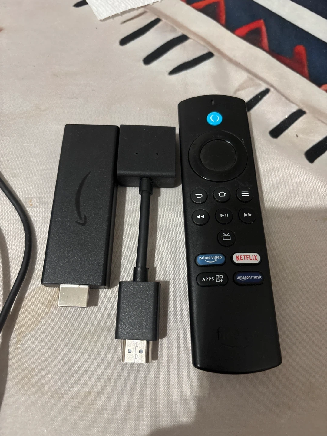 10Selling an Amazon Fire TV Stick with its remote. It's in great condition and ready to stream all your favourite shows and movies! Includes the power adapter and HDMI extender as well