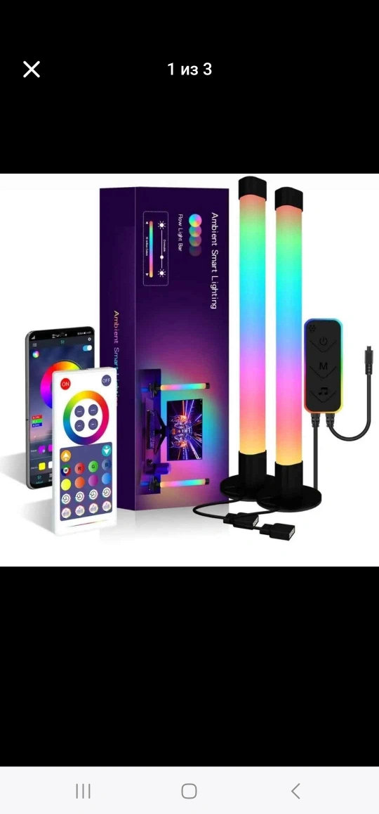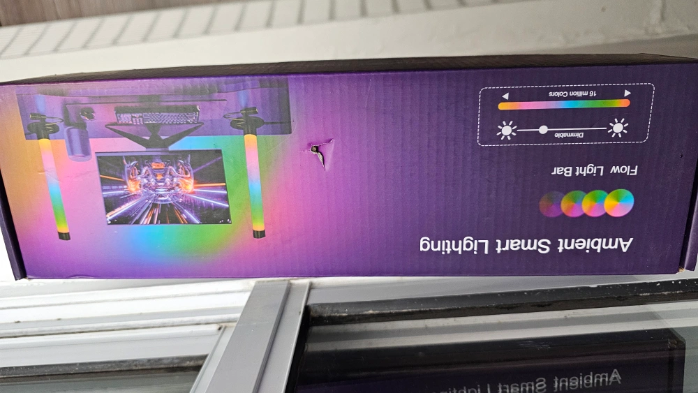 77Pair of colourful LED light bars. Includes remote control and USB power. Great for ambiance and gaming setups. Box shows some wear.