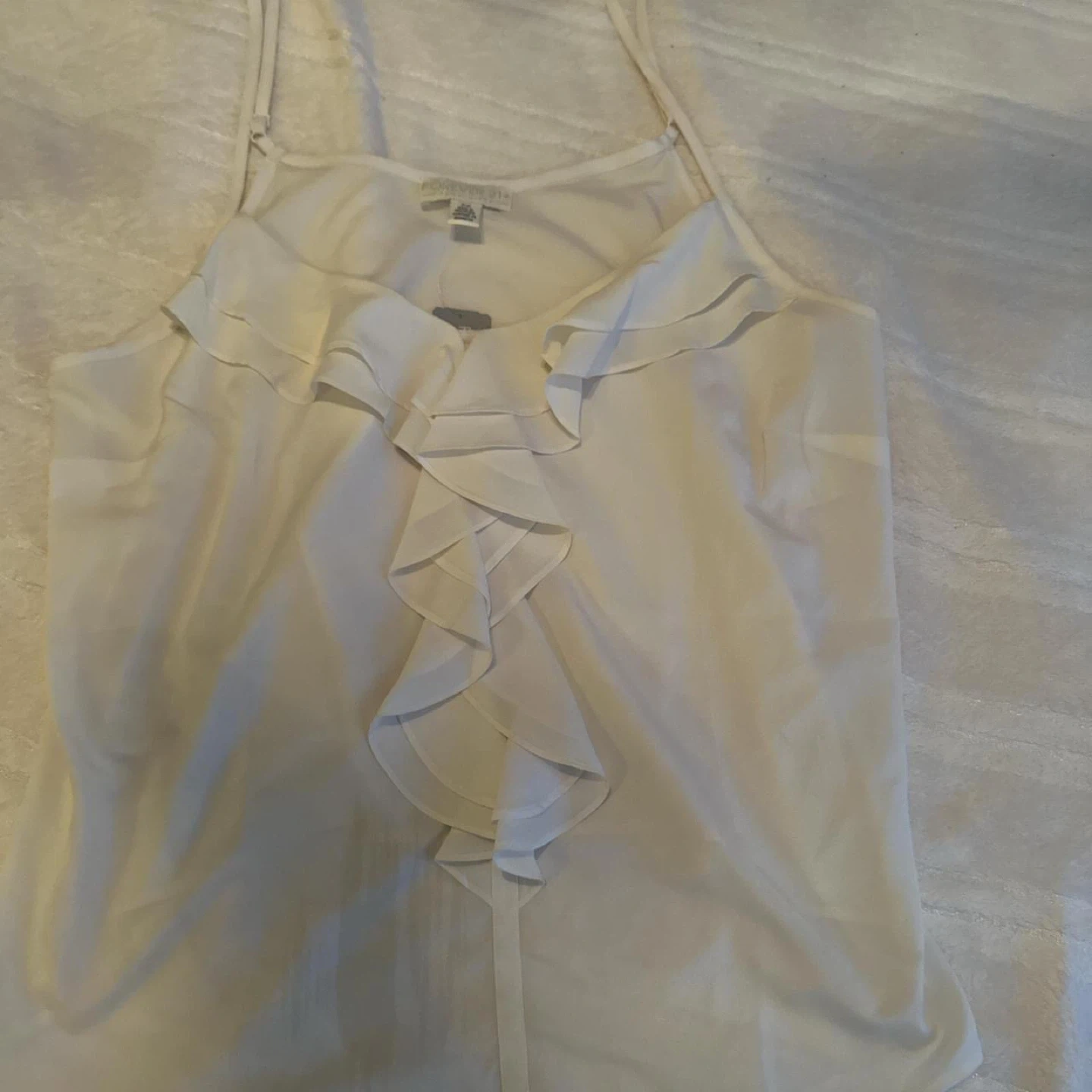 Here's a cute Forever 21 white cami top! It features a stylish ruffle design down the front. It's a size XXL and in great condition. Perfect for layering or wearing on its own!