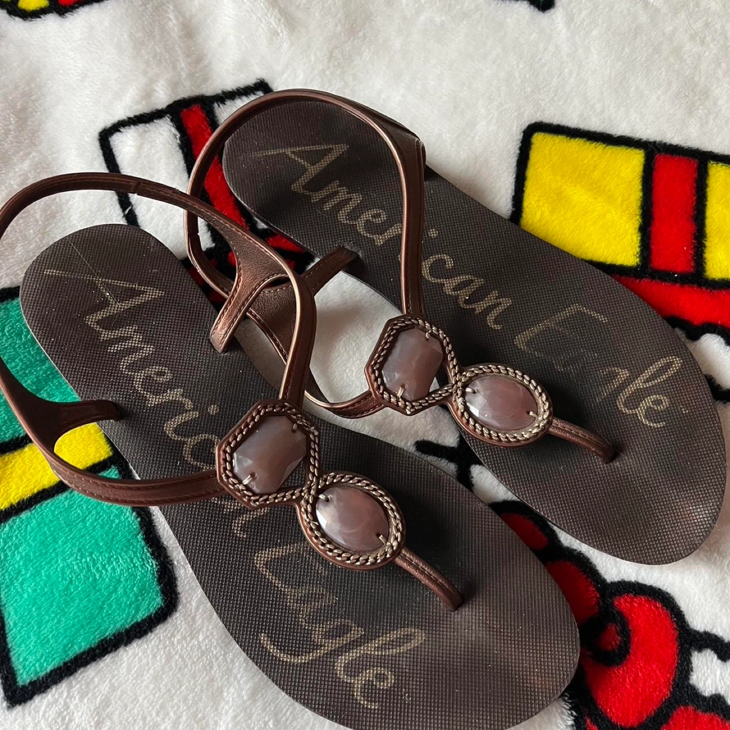 These American Eagle thong sandals are a stylish addition to any wardrobe! They come in a lovely brown colour and are a size 5. Perfect for a casual day out or dressing up for a summer evening
