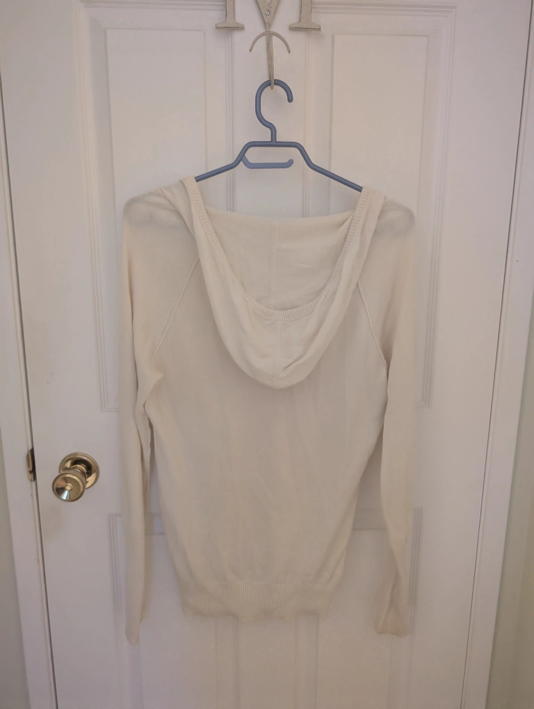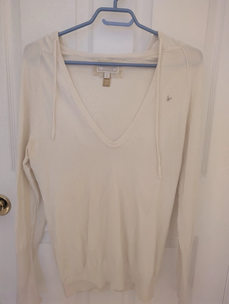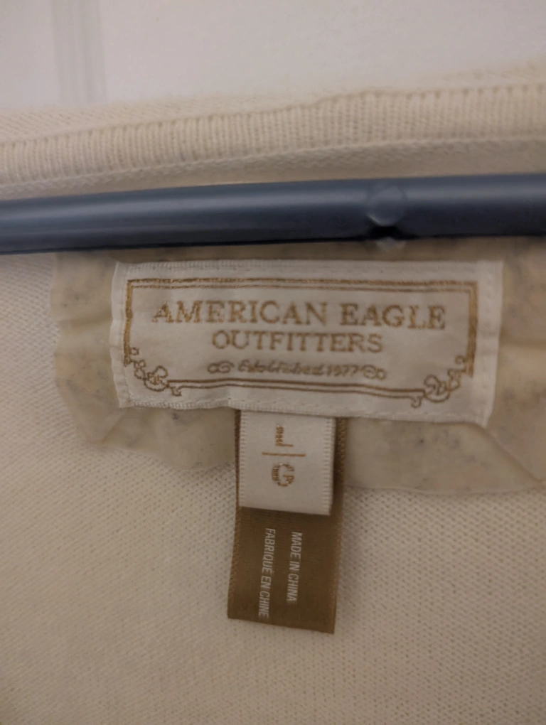 Selling an American Eagle cream-coloured hoodie in size L. It's in great condition and ready for a new home!
