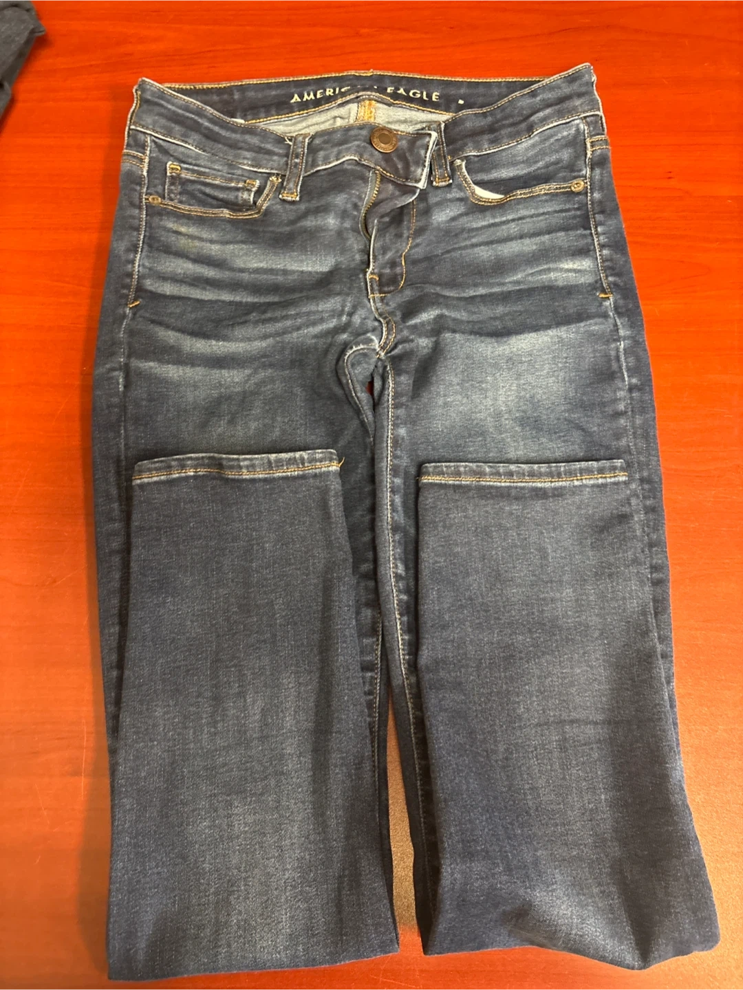 18Selling a pair of American Eagle jeans in a dark wash. They're in great condition and ready for a new home!