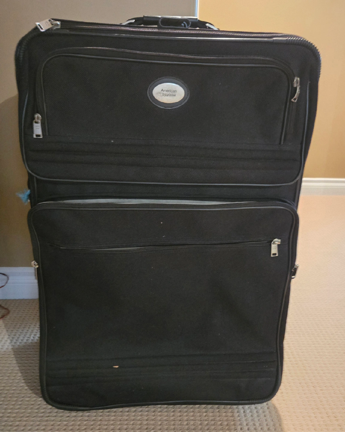 67Selling a black American Tourister suitcase. It's in good condition and ready for your next trip! Perfect for travel and easy to maneuver.