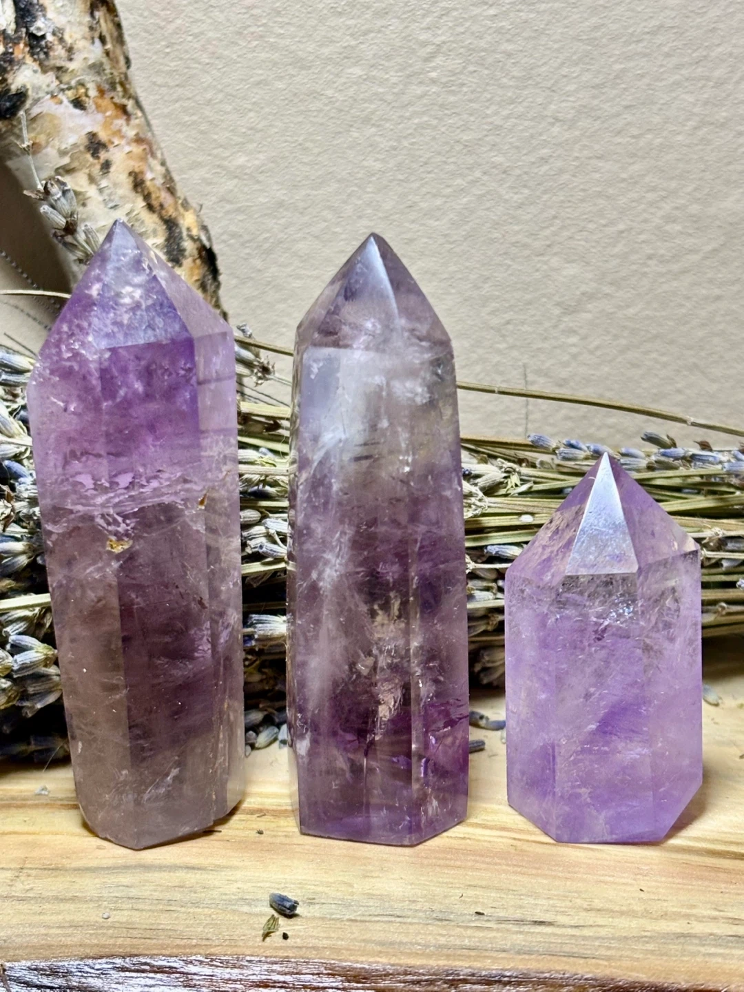 Selling beautiful amethyst crystal points. These are perfect for adding a touch of natural beauty to your space or for use in crystal healing practices. Each point has a unique shape and colour variation, making them a lovely addition to any collection A-22 B-17 C-12 Pick up near commonwealth stadium. Please see my other ads for more.