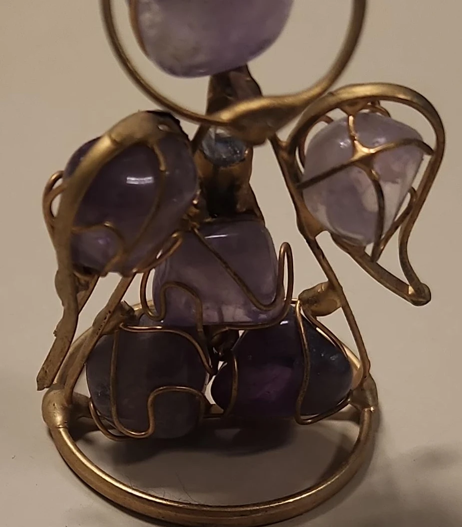97This is a beautiful amethyst crystal tree ornament! It features lovely purple amethyst stones set in a gold-tone metal frame. It would make a great addition to any home decor
