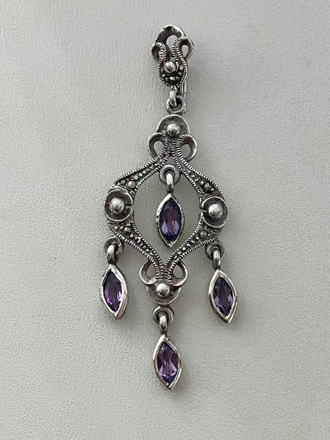 Amethyst & Marcasite 925 Sterling Silver Pendant