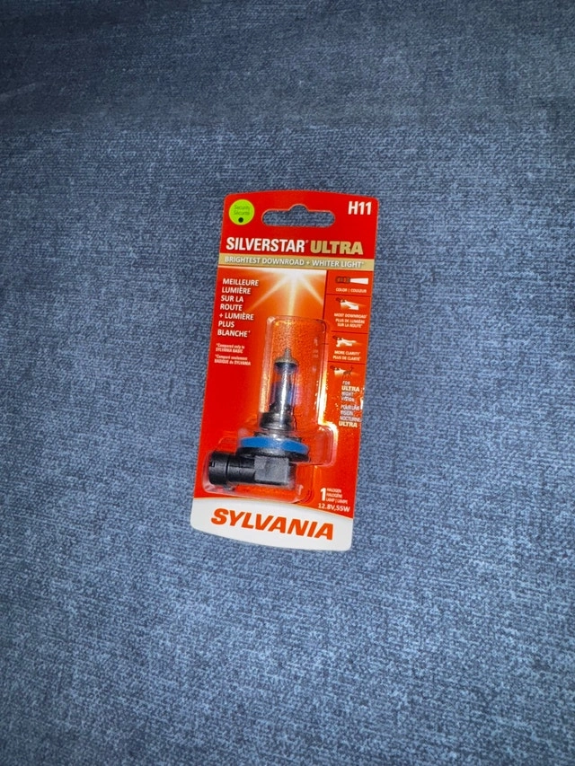 New Sylvania SilverStar Ultra H11 halogen headlight bulb for improved visibility. Operates at 12.8V and 55W. Enhance your vehicle's lighting performance. Type: H11, Brand: Sylvania, Model: SilverStar Ultra, Voltage: 12.8V, Wattage: 55W.