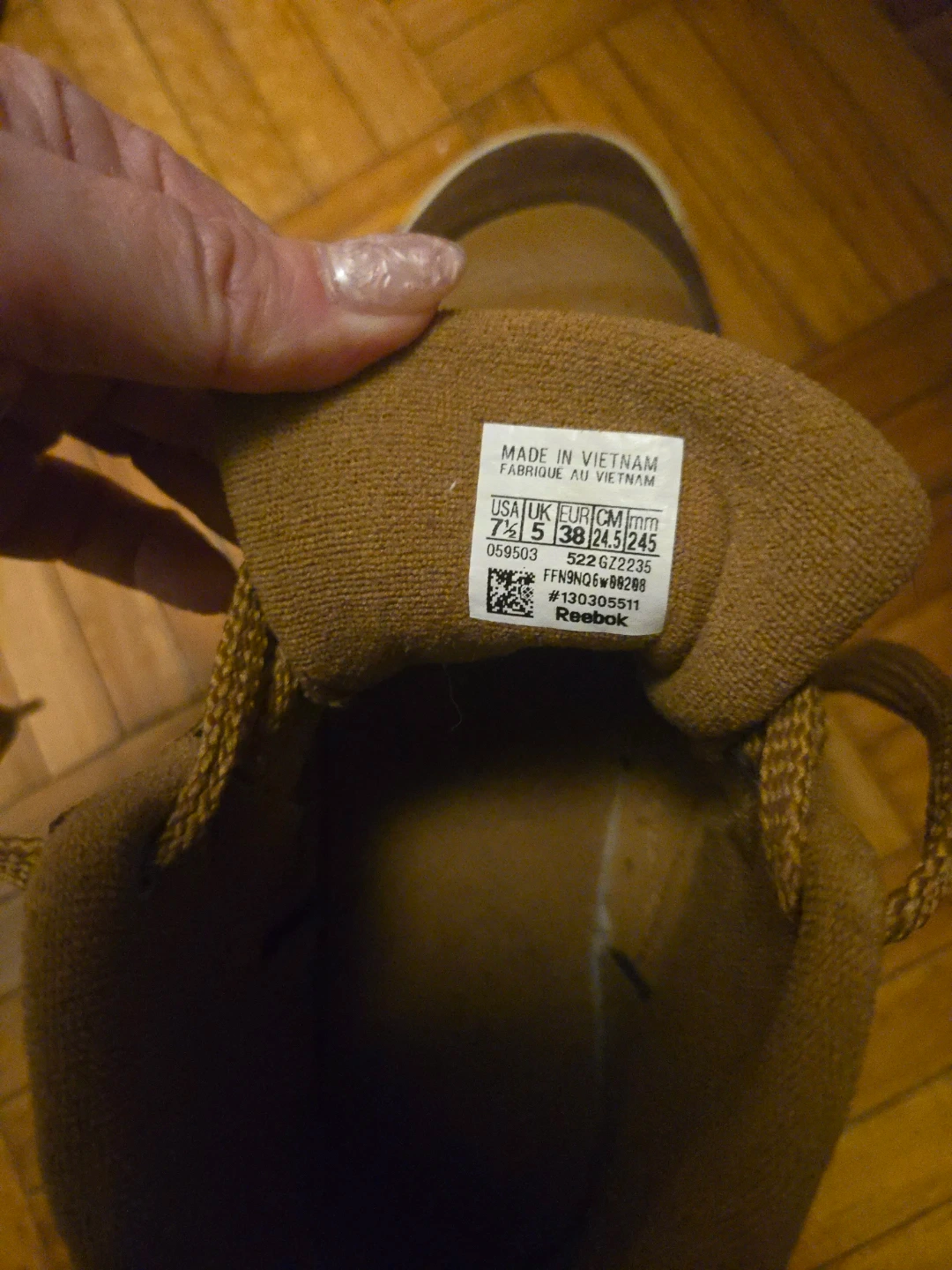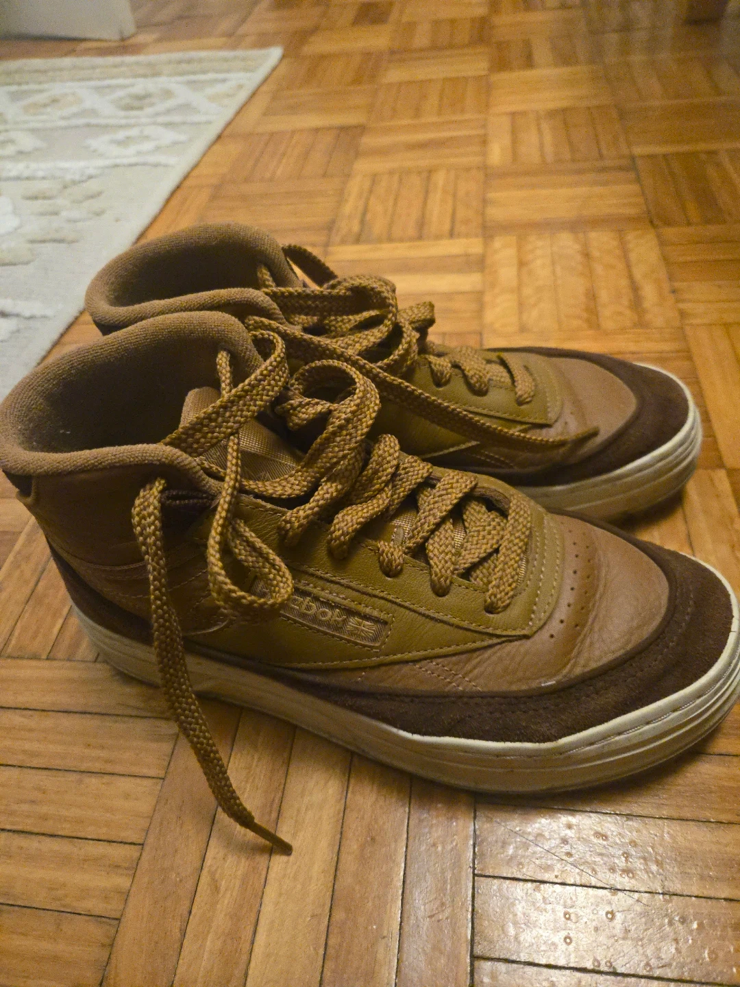 Buy & SellReebok Mid-Top Sneakers - Brown Leather & SuedeReebok Mid-Top Sneakers - Brown Leather & Suede$25These Reebok mid-top sneakers are crafted from a mix of brown leather and suede. Size 7.5 US women's (sizing is a little big/long)ConditionGoodSize7.5 USBrandReebokWHERE TO MEETlittle italyView MapSELLERverified217358Little Italy15210 reviews0 chats·1 favorites·11 viewsSEND CHAT TO SELLERHi 217358! I’m interested in your listing.Hi 217358! I’m interested in your listing.Get the Karrot app to chatSign In to chat