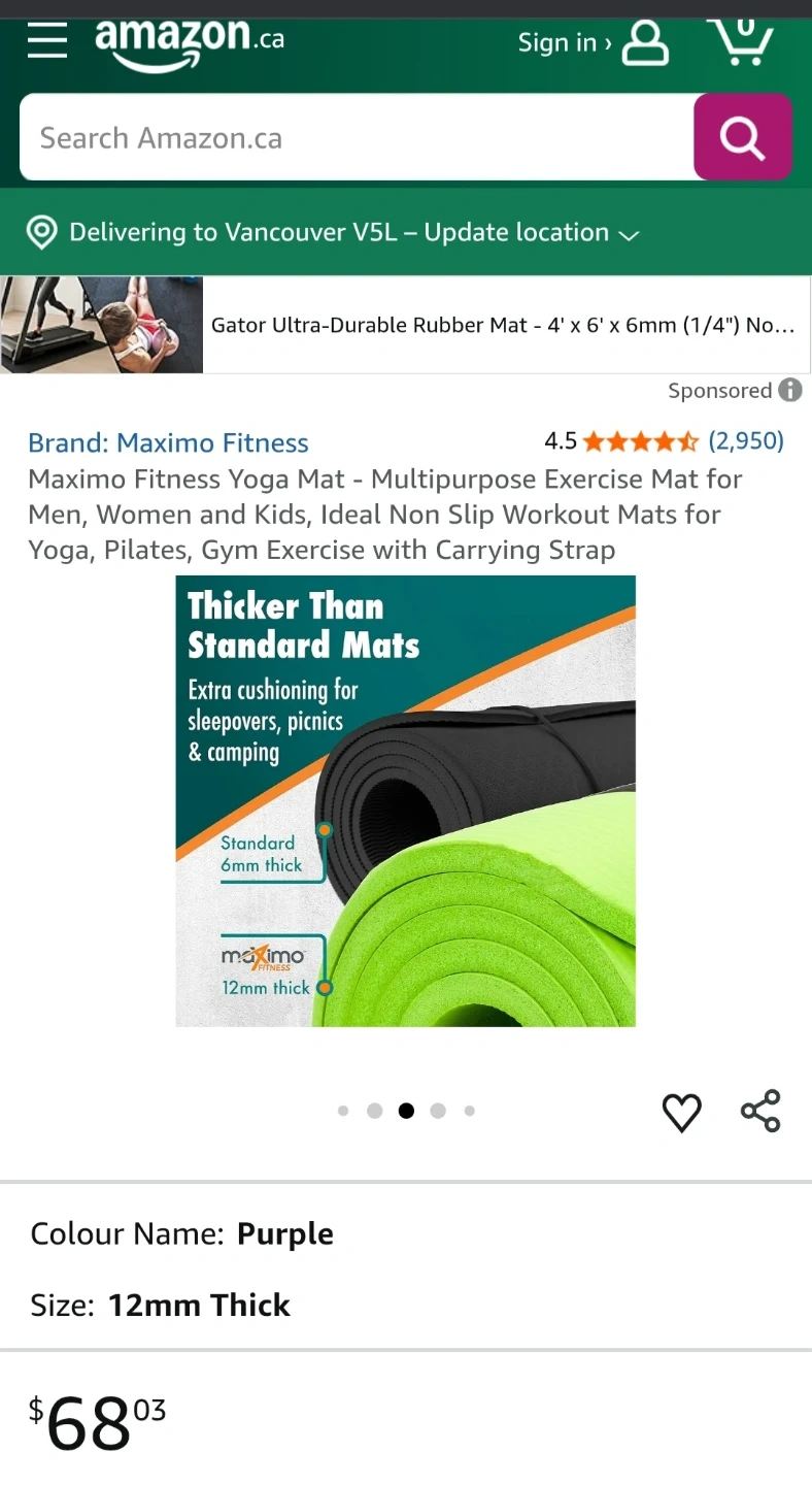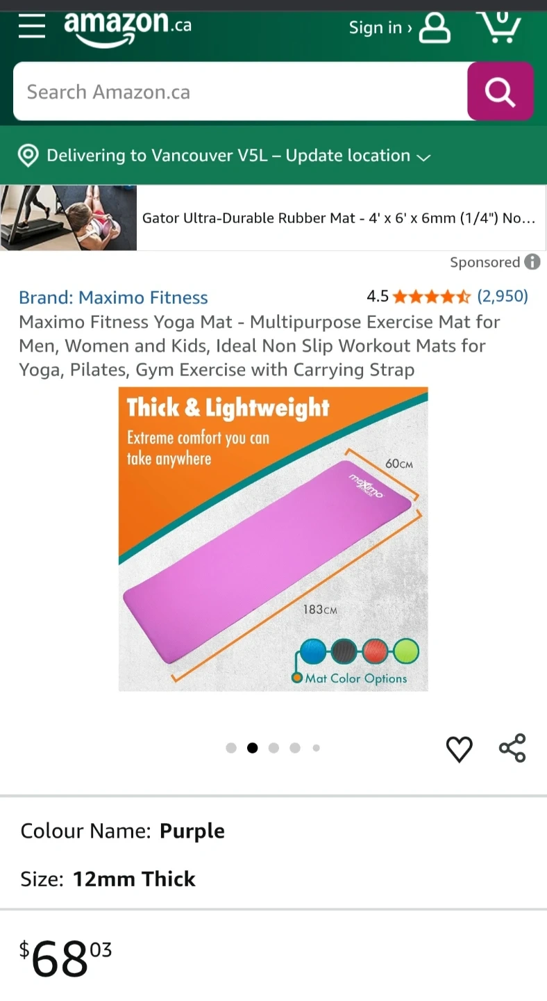 NEW Maximo Fitness Yoga Mat - 12mm Thick Purple $15