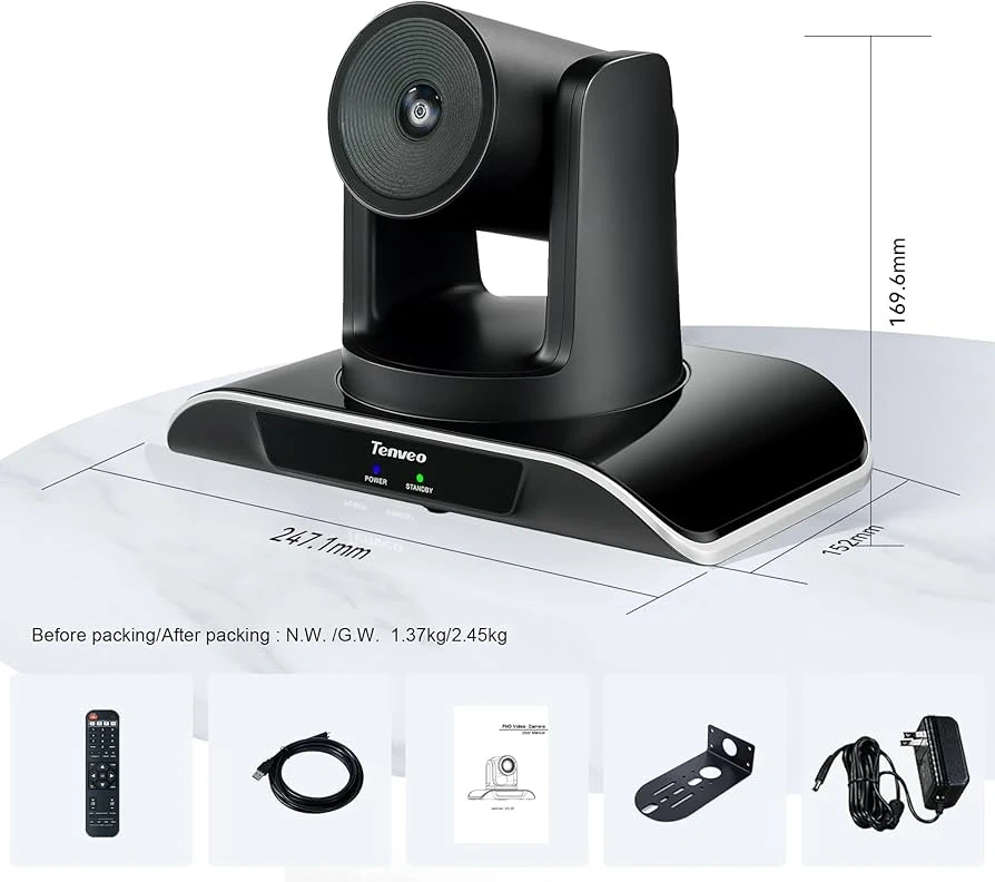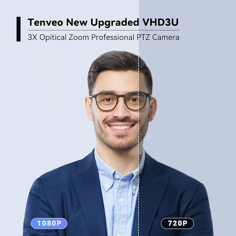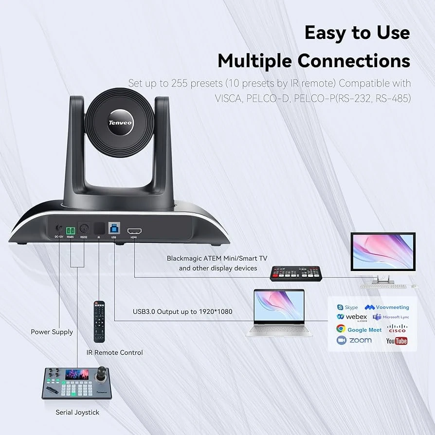 This Tenveo VHD3U camera offers 3X optical zoom and Full HD 1080p resolution. It features a 114° ultra-wide view angle and a SONY sensor. Multiple interfaces including USB3.0, HDMI, RS232, and RS485 are supported. It's perfect for video conferencing and large scene coverage.