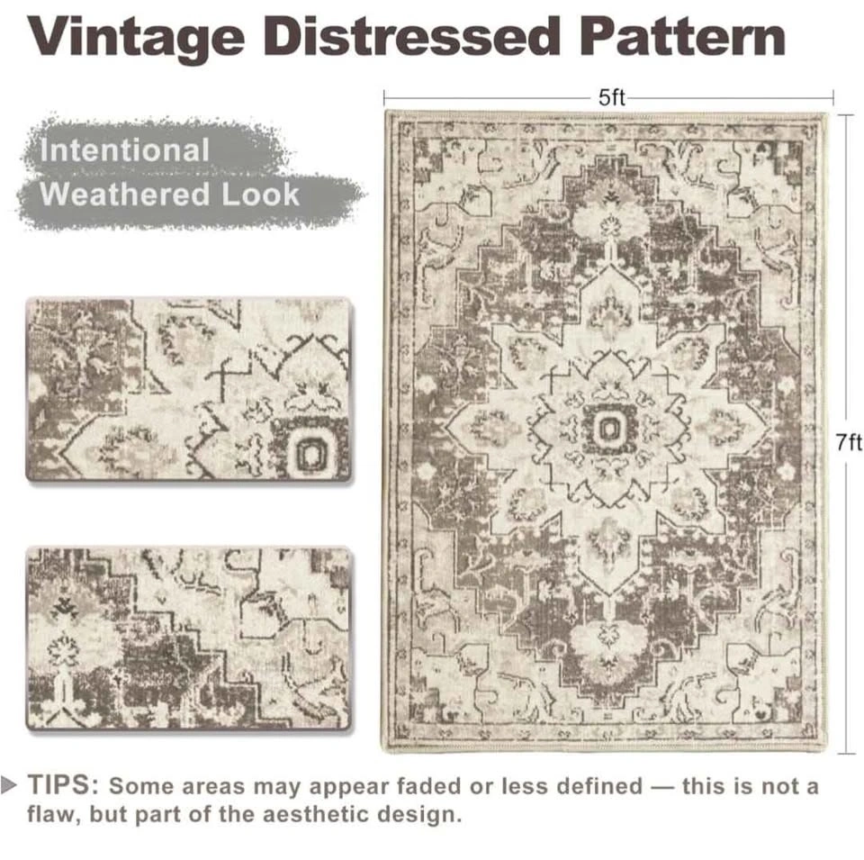 5x7 Vintage Area Rug - Washable Distressed Living Room Rug