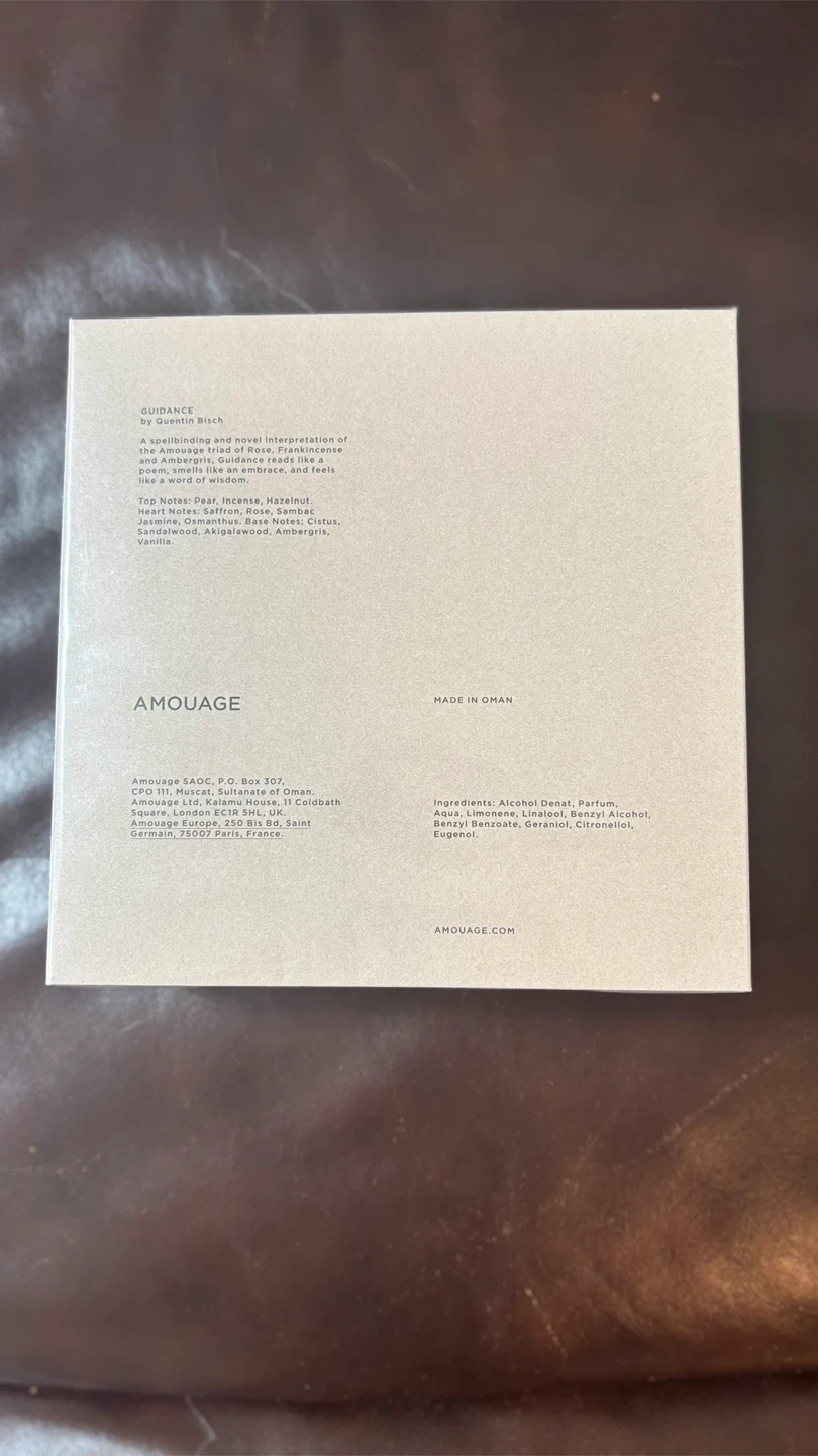 22Selling a BNIB bottle of Amouage Guidance Eau de Parfum. It comes with the original box. This perfume has top notes of Pear, Incense, and Hazelnut, and heart notes of Saffron, Rose, Sambac Jasmine, Osmanthus, and Base notes of Cistus, Sandalwood, Akigalawood, and Ambergris. Pick up only in Vaughan.