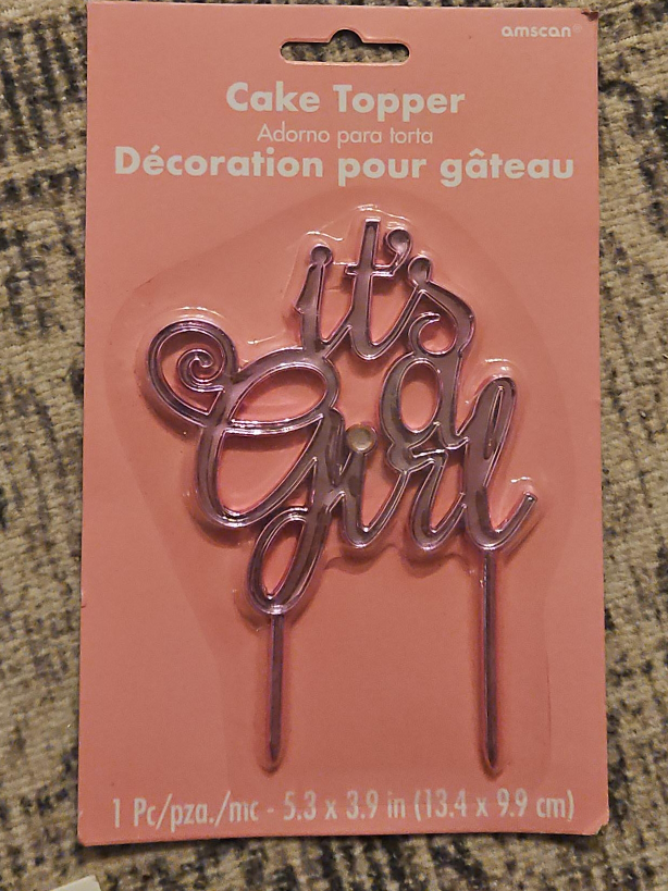 Brand new Amscan cake topper that says 'It's a Girl'! The dimensions are 5.3 x 3.9 inches (13.4 x 9.9 cm). Perfect for a baby shower or gender reveal party.BNWT/packaging didn't get to have baby shower.