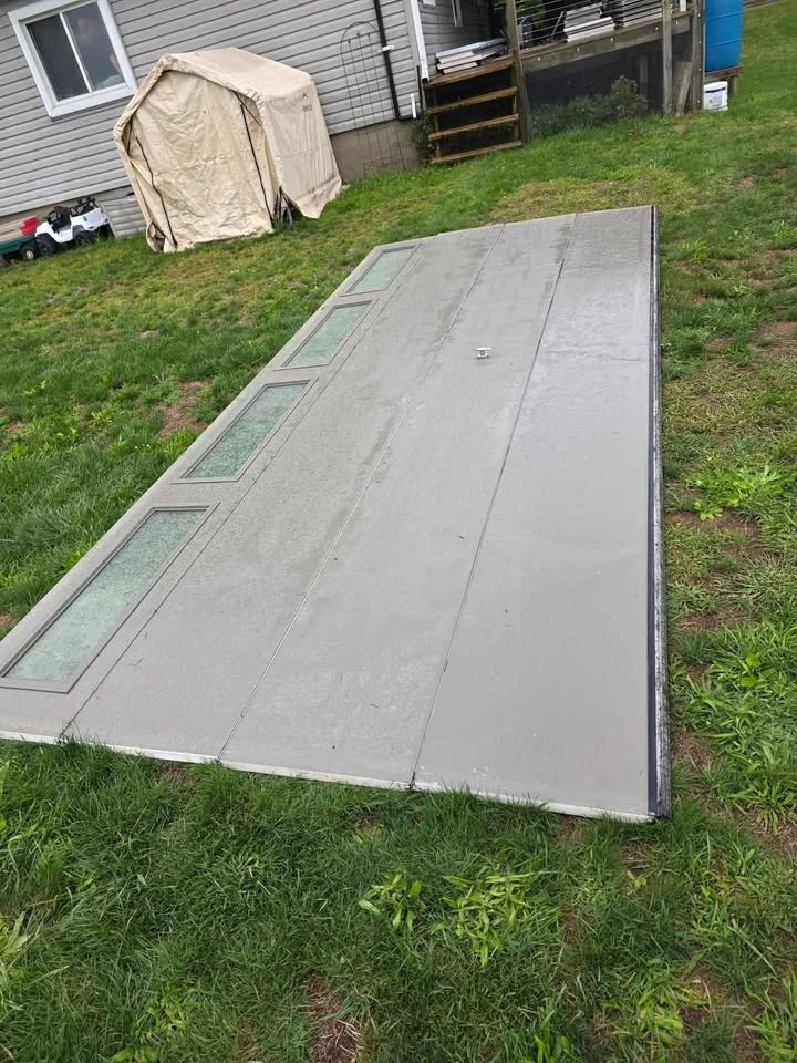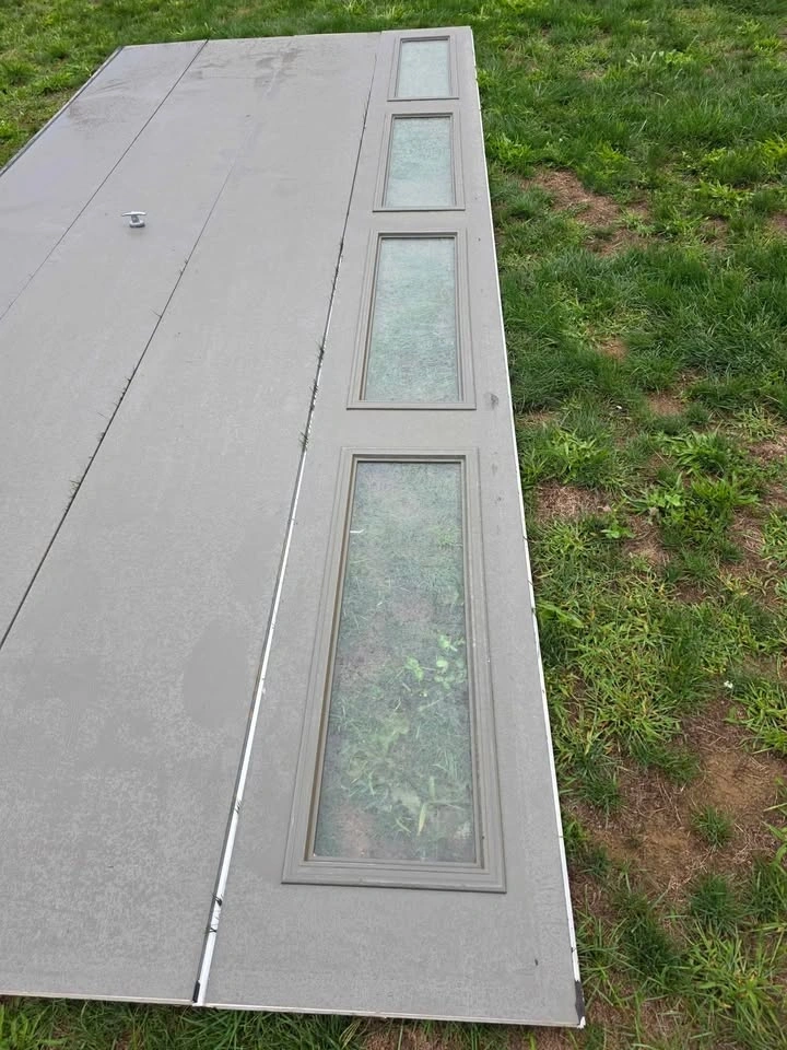 Made in Canada by Garaga. Polyurethane insulated R12 with clear single pane window. Delamination on bottom panel. Top panel has a little bit of damage at the mating surface (shown in pictures). $700 for panels, $900 with all hardware. Aluminum frame capping available for extra. Pick up in St. Williams area.