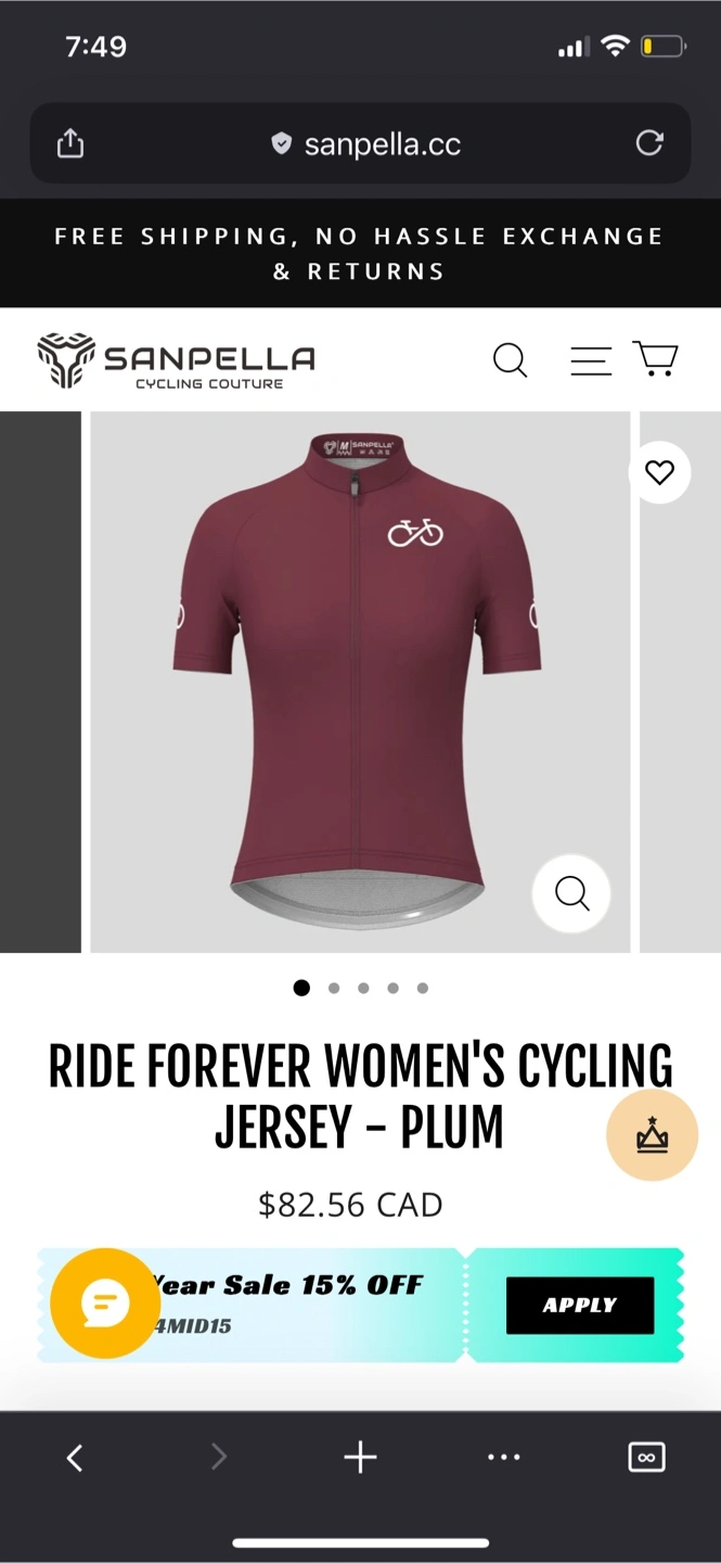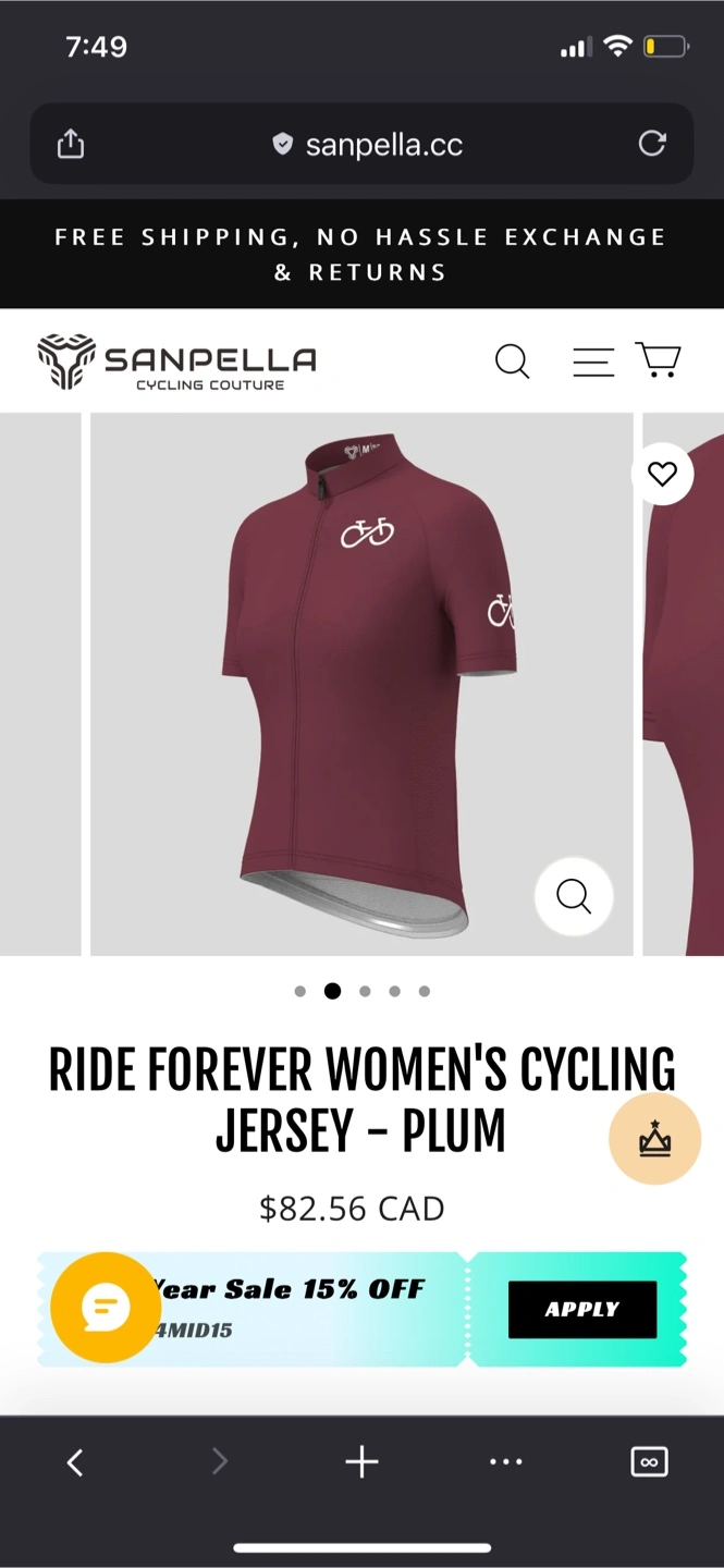 The jersey is the 'Ride Forever Women's Cycling Jersey' size XS in plum, and the shorts are the 'Minimal Solid Women's Cycling Shorts' size M, in burgundy. Both are brand new and ready for your next ride!