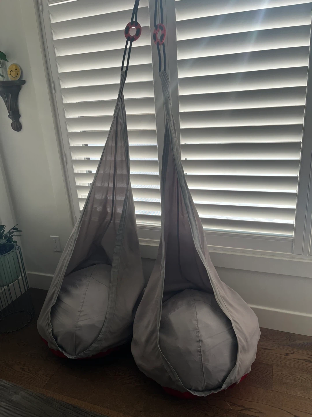 These hanging egg chairs are perfect for creating a cozy spot to relax. Made from a durable fabric, they're great used as a sensory swing. You will need to purchase the necessary hardware that works for your situation.