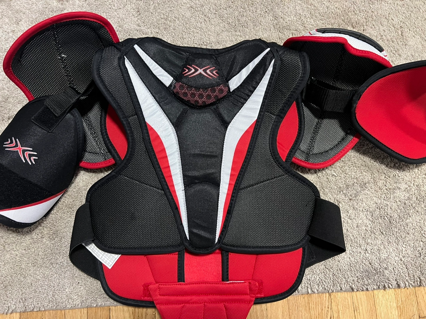 Bauer Vapor X Velocity senior hockey shoulder pads. Size medium/medium. Red, black and white. Excellent protection. Great condition.