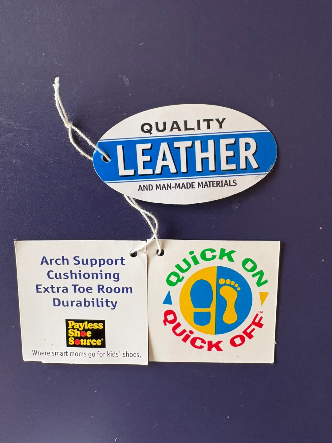 These Smartfit black quick-on and quick-off shoes are a Size 2 and great for school or play. The shoes are skid resistant and are in very good condition. They are made of quality leather and man-made materials with arch support, cushioning, extra toe room and durability.