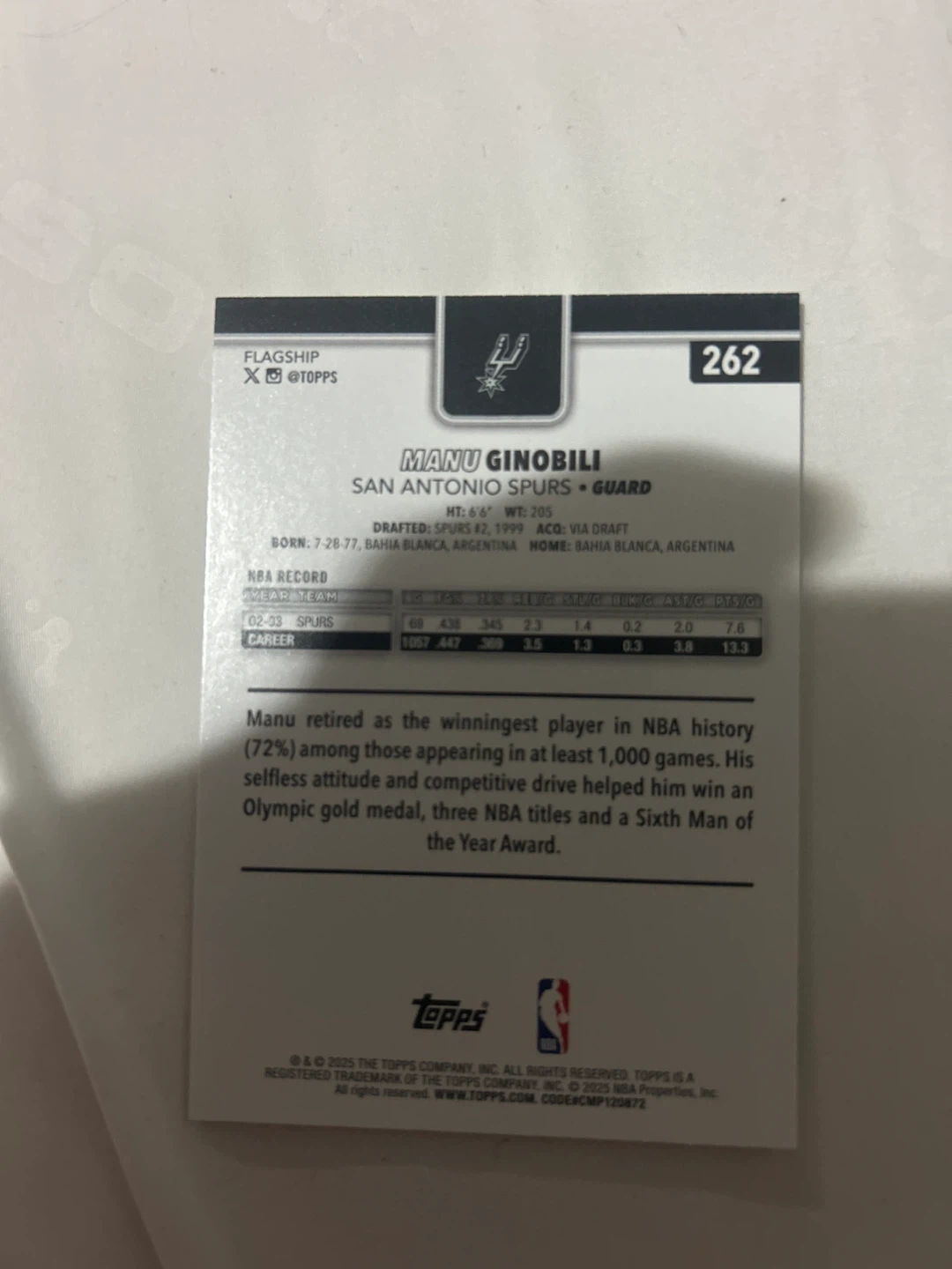 Topps Manu Ginobili 262 NBA Card