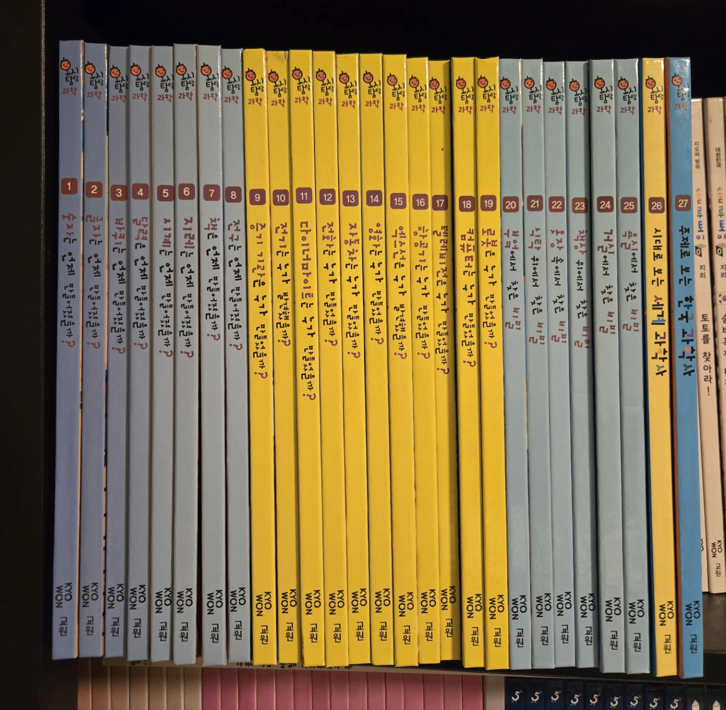 This is a collection of Kyowon science books for kids. They cover various topics related to the history of science and inventions. The books are numbered from 1 to 27.
