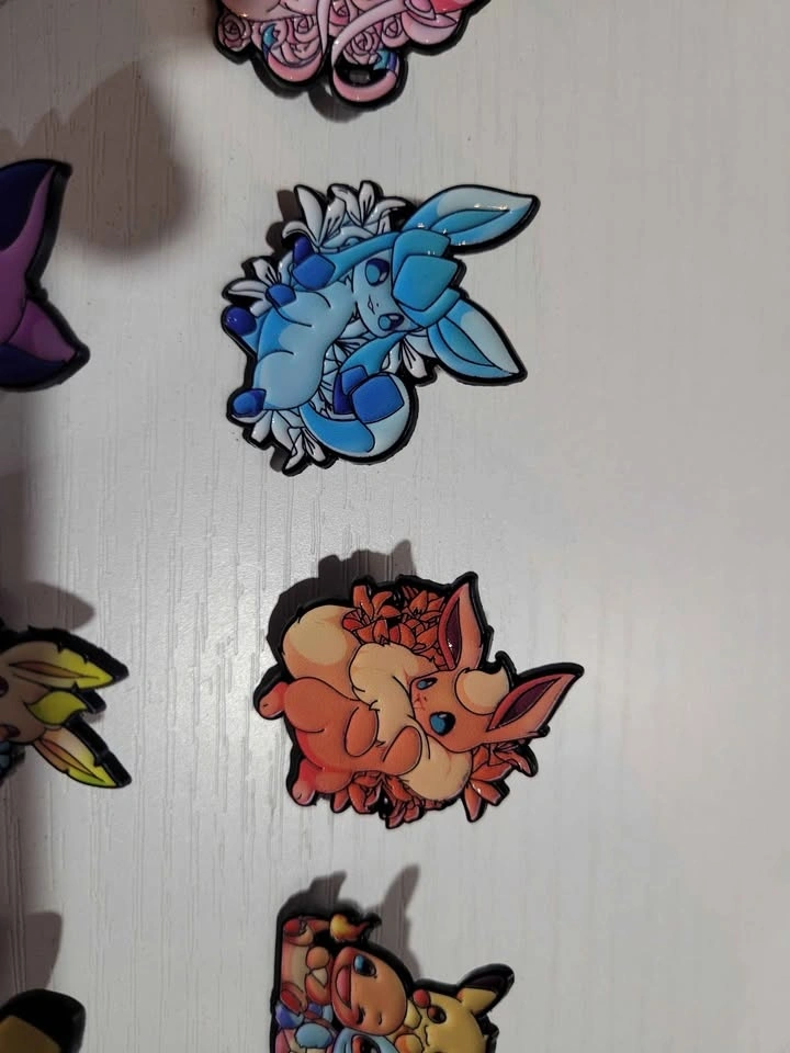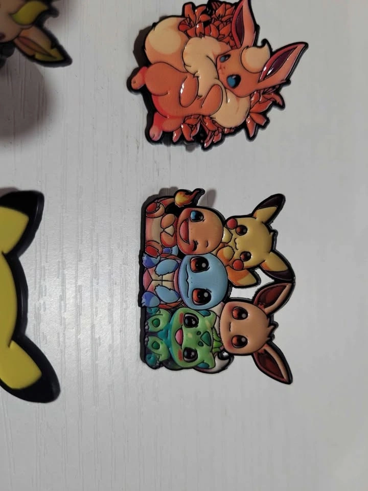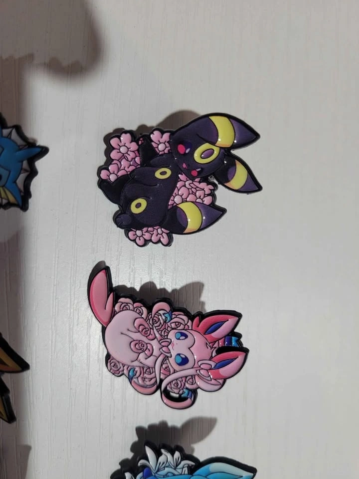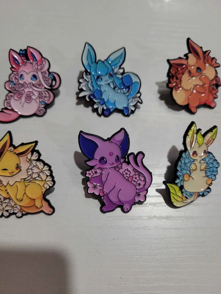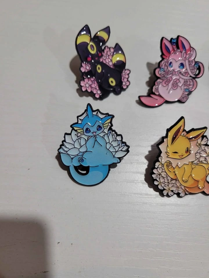 Pins are $5 each, buy 3 get one free. I have 10 different pins available: 8 are Eeveelutions, 1 is Pikachu, and 1 is a mix. Pickup is in Spruce Grove. I'm available most days in winter if you give me a specific time. I will be posting more anime and Pokemon related pins as they become available.